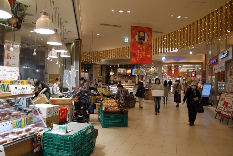 大和西大寺駅の駅ナカです。駅を出てすぐとかでなく、「改札の中」でこの規模の買い物・飲食ができる駅は全国に何千と駅があるなかで、なかなかないのではないでしょうか。ふつうにめっちゃ安い野菜のお店なんかもあり、びっくり。この駅が最寄りだと毎日充実した買い物ができそう。