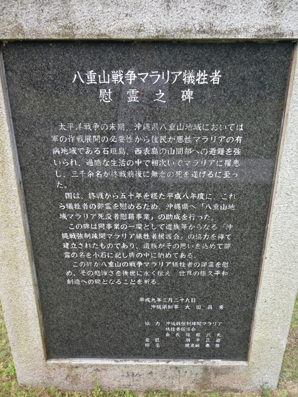 *第2次世界大戦時の戦争マラリアの被害を刻んだ「八重山戦争マラリヤ犠牲者慰霊之碑」