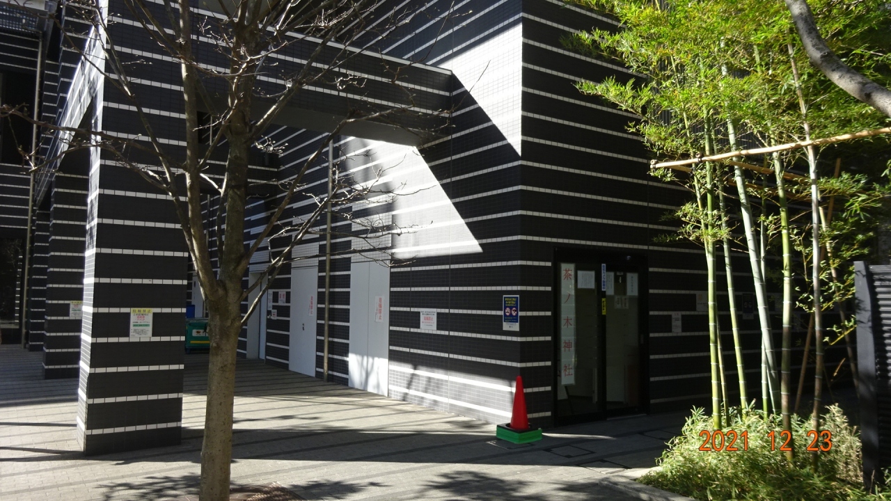 社務所は隣のお洒落なビルの一階の一部にあります。