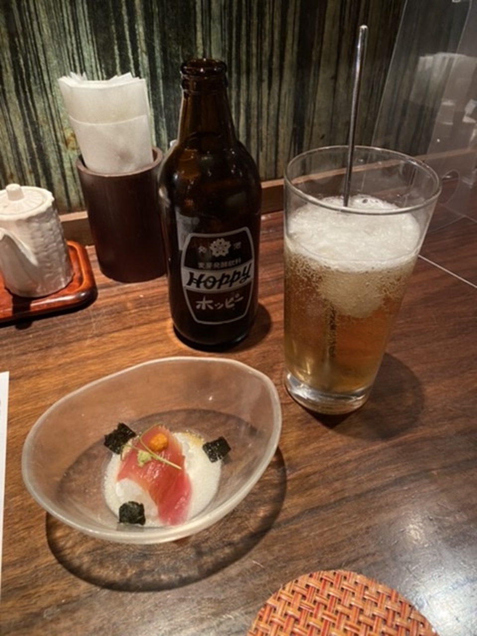 先ずはホッピーセット白!中の焼酎がシャリシャリに凍って出てきました。