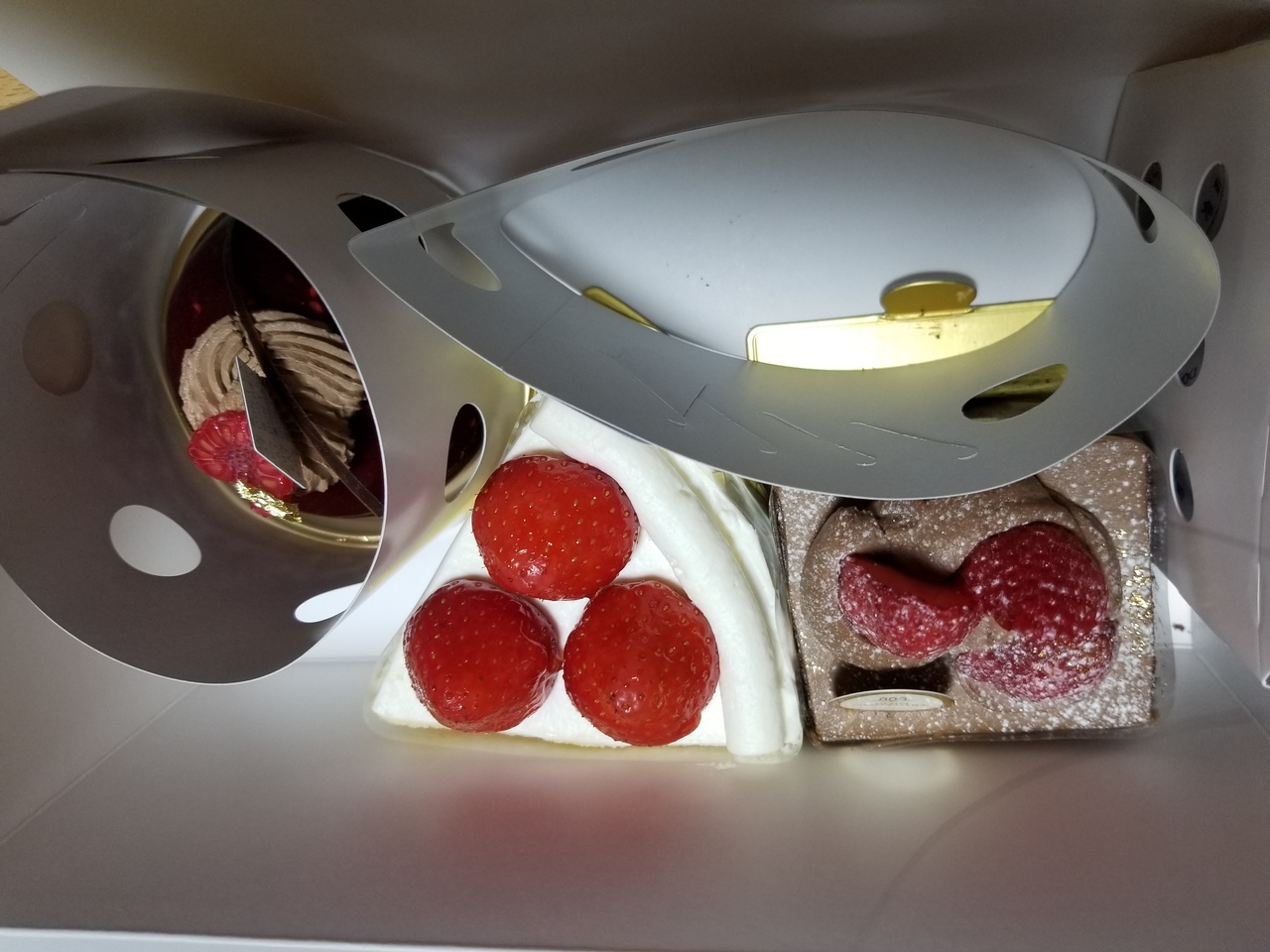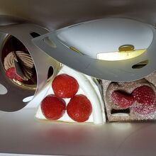 ケーキはあまり甘くなくてとても食べやすい。スポンジの部分も丁度良い固さだ。