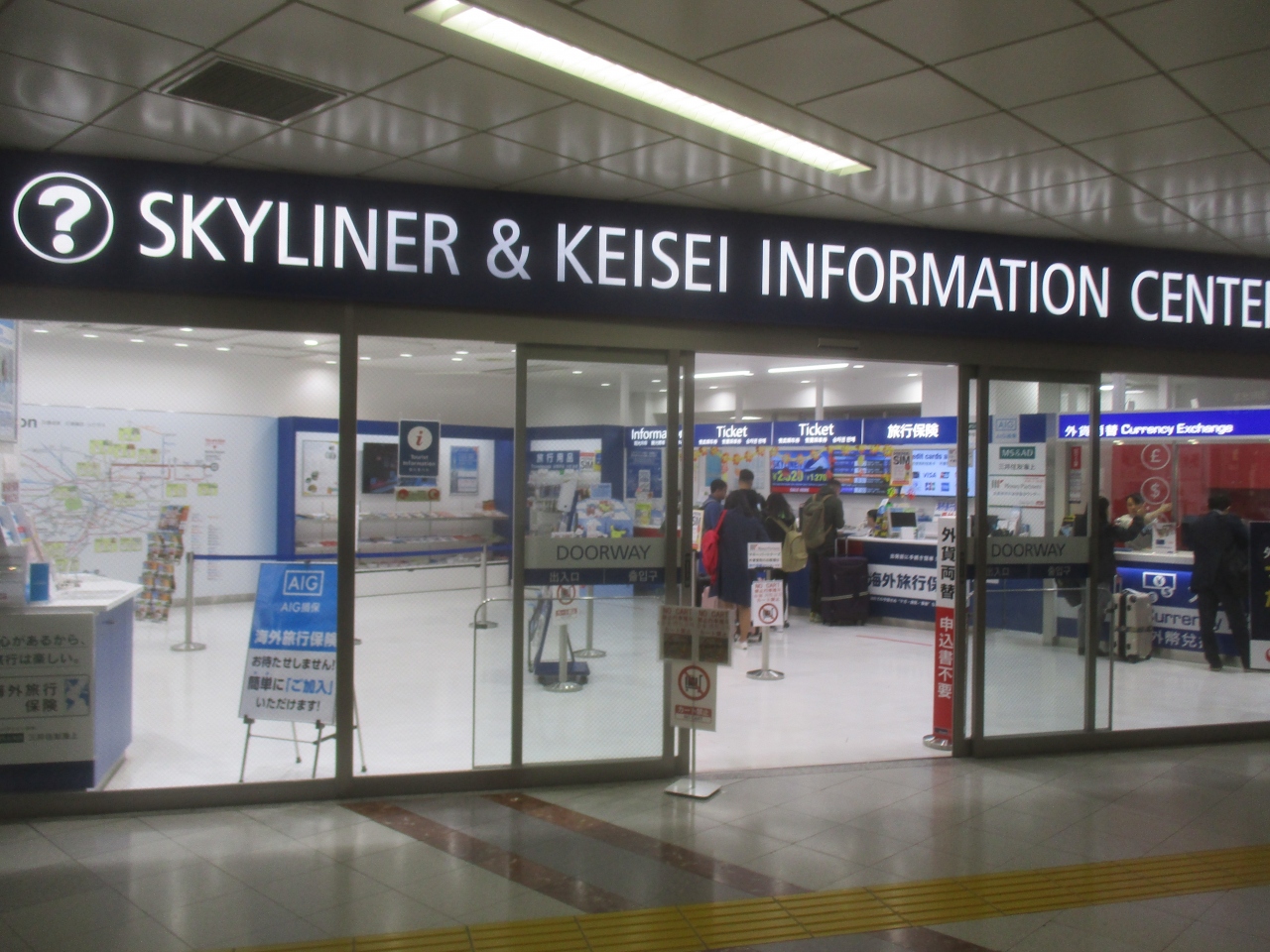 成田空港にスカイライナーや京成のインフォメーションセンターがありました。東京の中心部や日本のどこへ行くか、列車の乗り方を教えてくれました。京成の発券所はこのオフィスの反対側にあり、JRよりも速く安いので、空港のアクセスには京成電車を利用することをおすすめします。