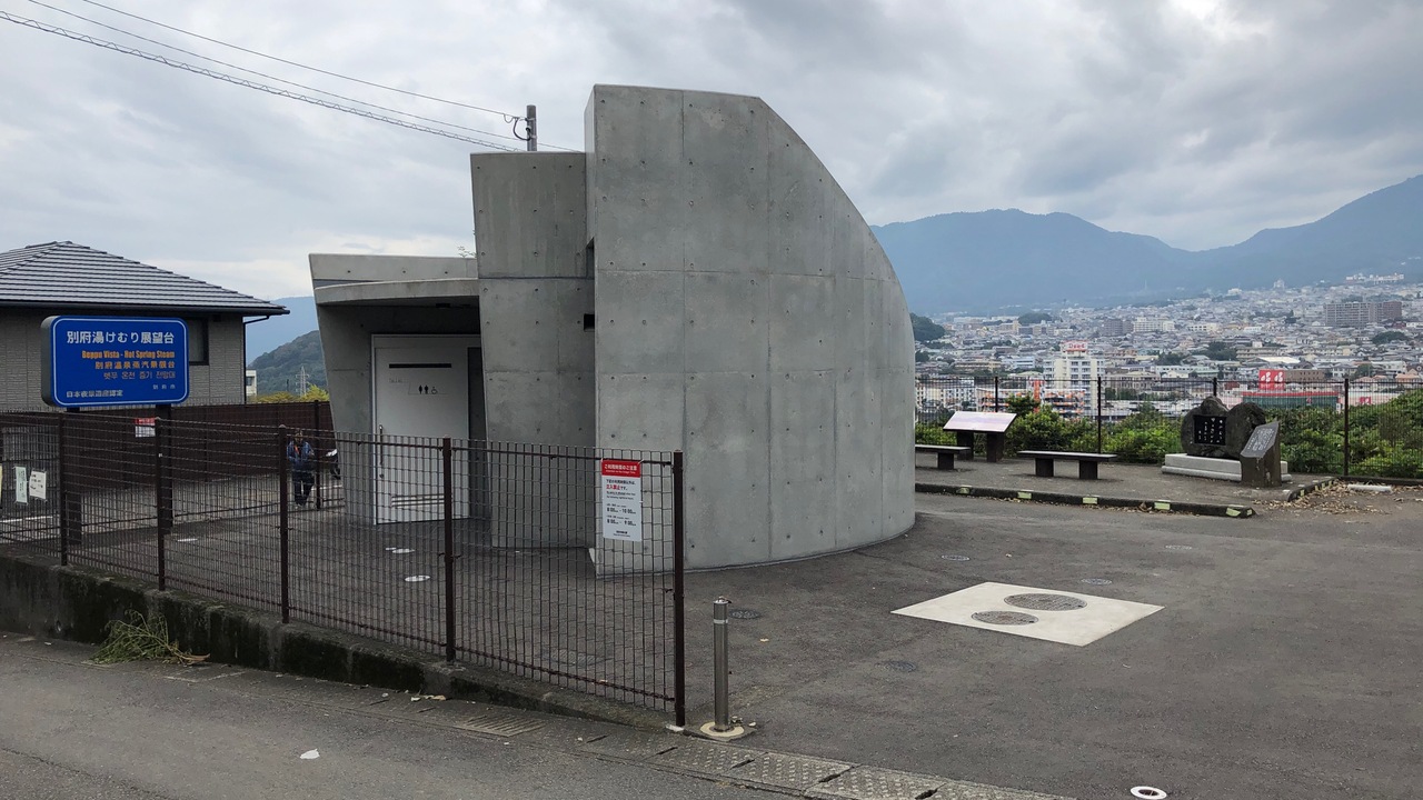 別府市街地から少し離れた住宅地にあります。貴船城という観光天守閣の近くです。ここからの景色が一番良いとガイドブックに紹介されていました。個人的には、湯けむり展望台以外の場所からも、温泉街の良い景色を眺められる場所がたくさんあると思いました。駐車場は10台停められるかどうかという狭さです。