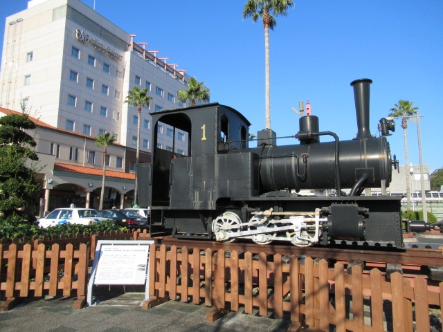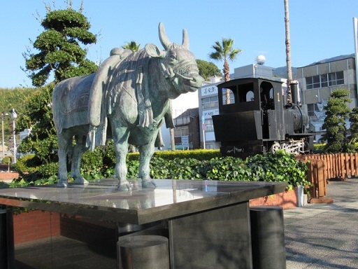 コロナの感染者は減少し緊急事態宣言も解除され、進めていた日本100名城制覇の再開で四国の宇和島にやってきました。宇和島城へ行くのですが宇和島駅を下車し駅前に出るとヤシの木が植えられ、まるでフェニックスの世界です。蒸気機関車があったので近くに寄って見ると説明文と「大和田建樹詩碑」が建っていました。そうなのね、あの有名な「汽笛一声 新橋を はやわが汽車は 離れたり」から始まる鉄道賛歌の歌碑です。そうだったのね、作詞された大和田建樹は宇和島のご出身だったのですね。旅の疲れも吹っ飛び笑顔になりました。そして宇和島で有名な闘牛のオブジェもありました。合わせてご覧くださいね。
