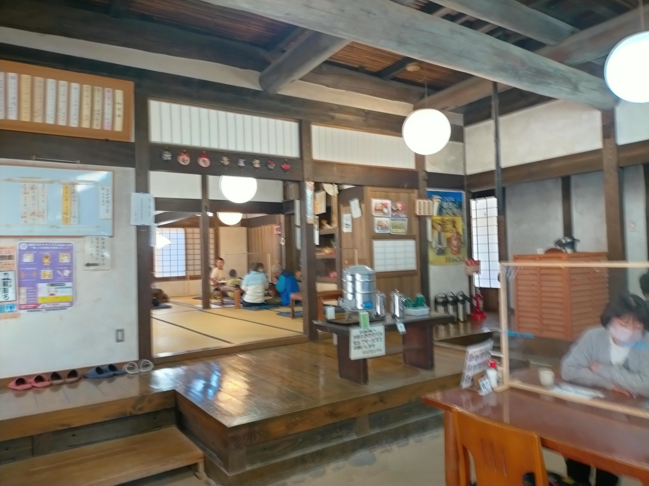 四万温泉に家族旅行した際に、道の駅霊山たけやまにあるフィールドアスレチック風の児童遊戯施設で孫たちを遊ばせました。同じ敷地内にあったかやぶき屋根のいかにもおいしそうなお蕎麦屋さんで食事をしようとしましたが20組以上並んでいて、しばらく待ちましたが1時間以上待つとのことで諦めました。