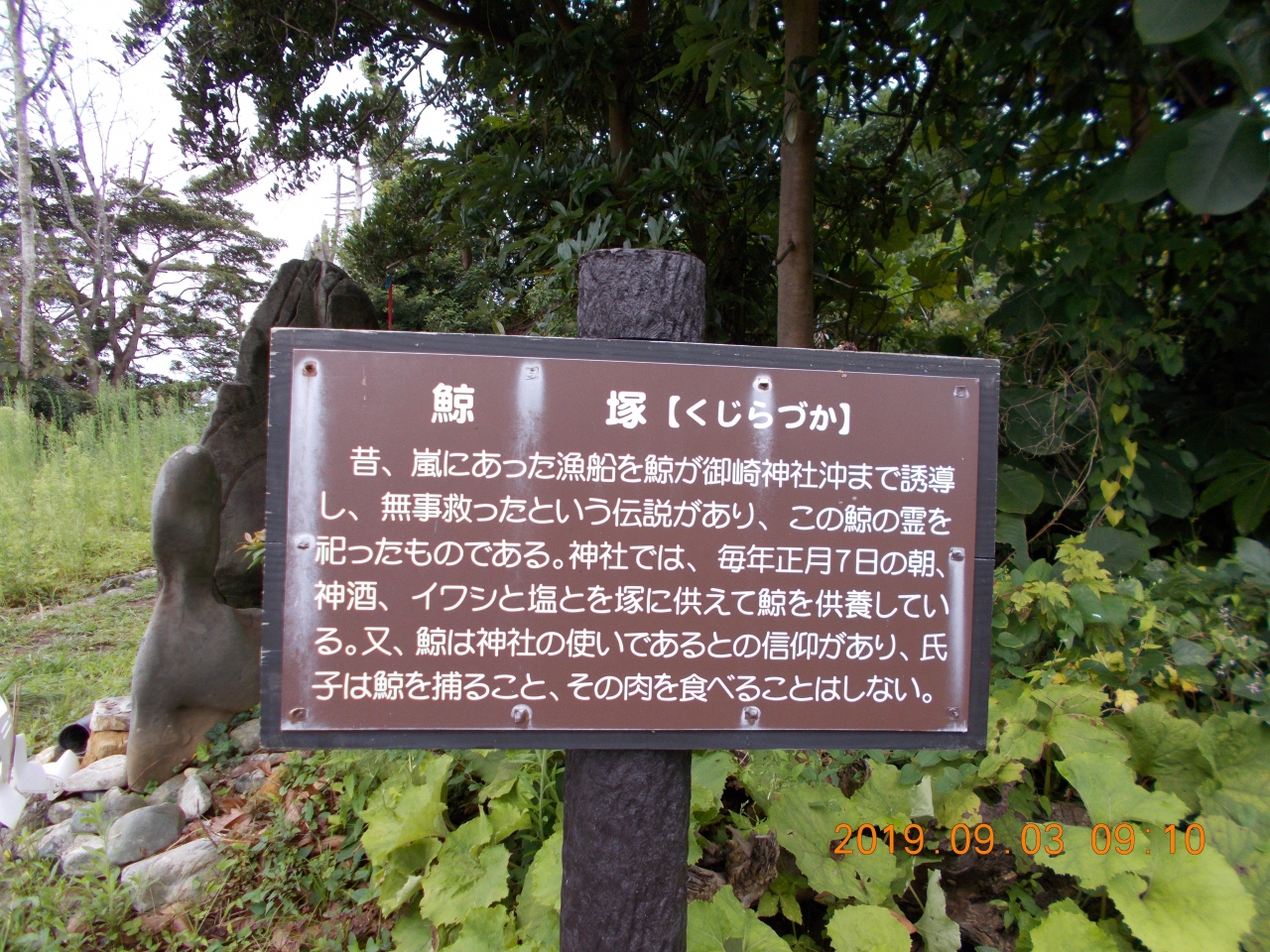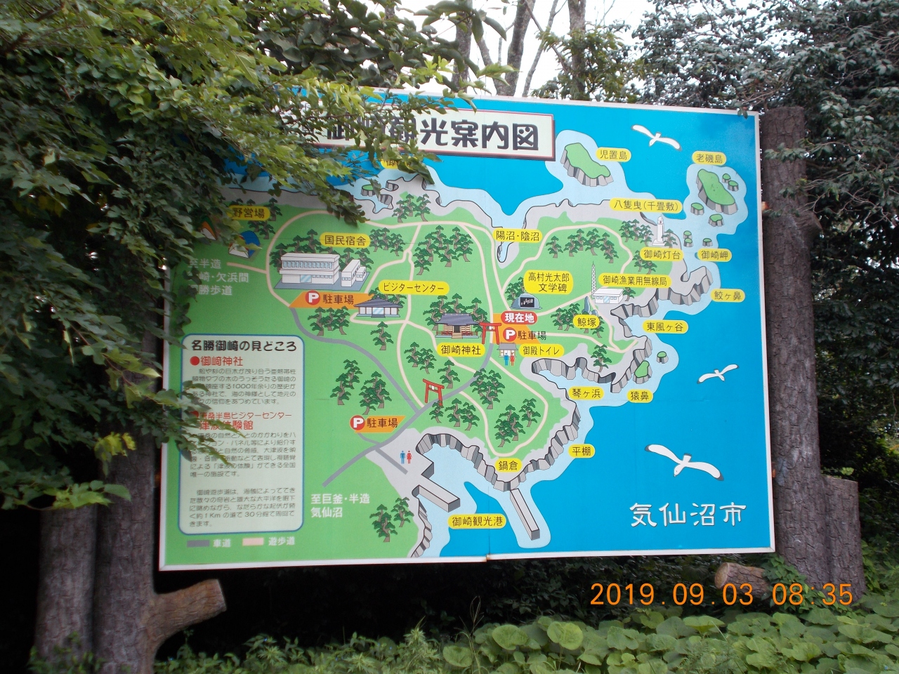 唐桑半島の先端に位置する岬である。中心部の御崎神社の前にトイレ付きの広い駐車場が整備されている。海岸の岸壁の上を遊歩道が整備されていて、岬を一周することができる。鯨が嵐にあった漁船を救った伝説にちなんだ鯨塚がある。駐車場の脇には伊達吉村の文学碑ある。