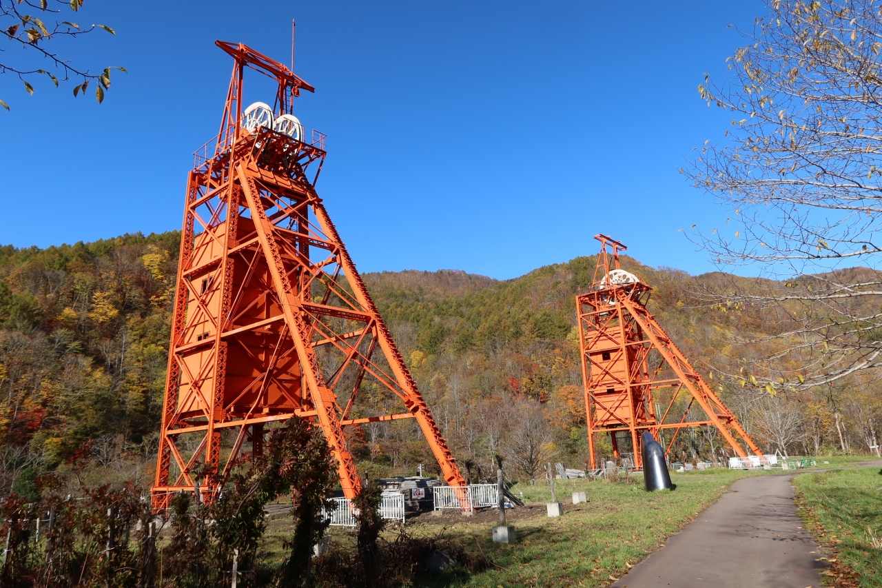高層建築物は旧三菱炭鉱時代のモノで竪坑櫓と呼ばれているものです。