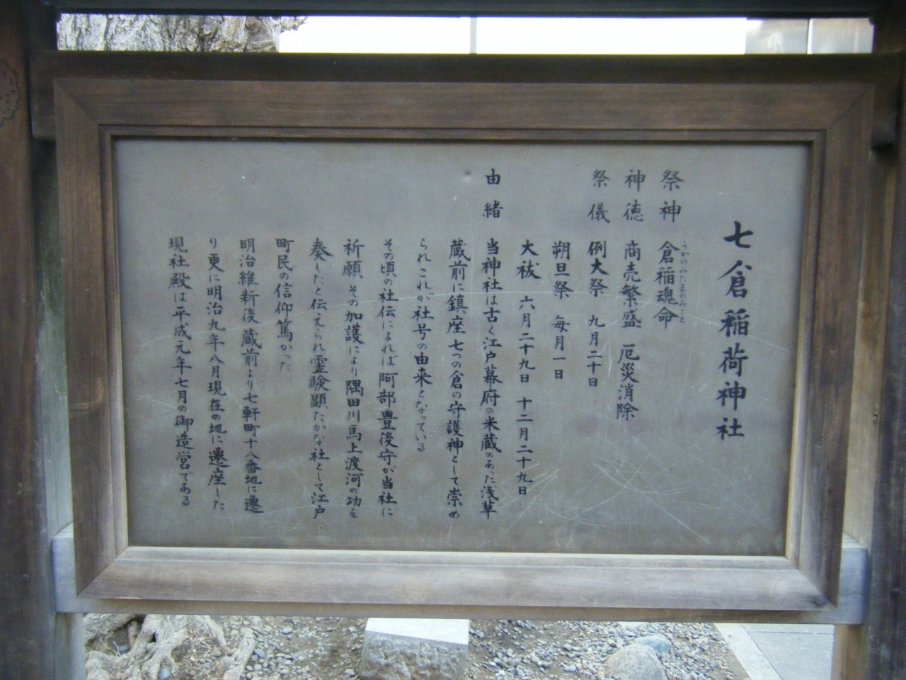 2020年12月に日暮里~湯島周辺を散策した際に立ち寄りました。東京メトロ千代田線根津駅から徒歩5分ほどの場所にある神社で、御祀神は倉稲魂命となります。創建に関する詳細な情報はわかりませんでしたが、当初は蔵前あったものが、明治維新後に七軒町へ、さらに明治9年になって現在の場所に遷座したそうです。商売繁盛と厄災消除のご利益があるとの事でしたので、仕事がうまくいくようにしっかりとお参りをさせていただきました。