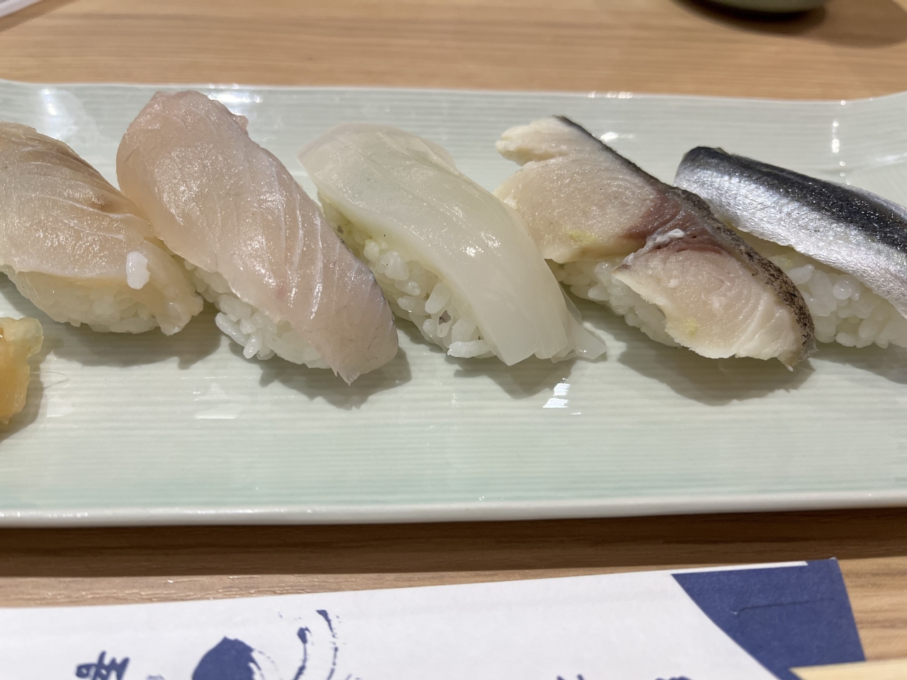 ままかりはままかり漬けの酢の効いたものが乗っていると思ったら酢っぱくはなく、ままかり本来の味を楽しめました。白身魚で昆布締め鯛とさわらを注文。魚に詳しくないどちらかわからないのですが、どちらかの魚が〆ても茹でてもいないのに生とは思えない歯触りで美味しかったです。