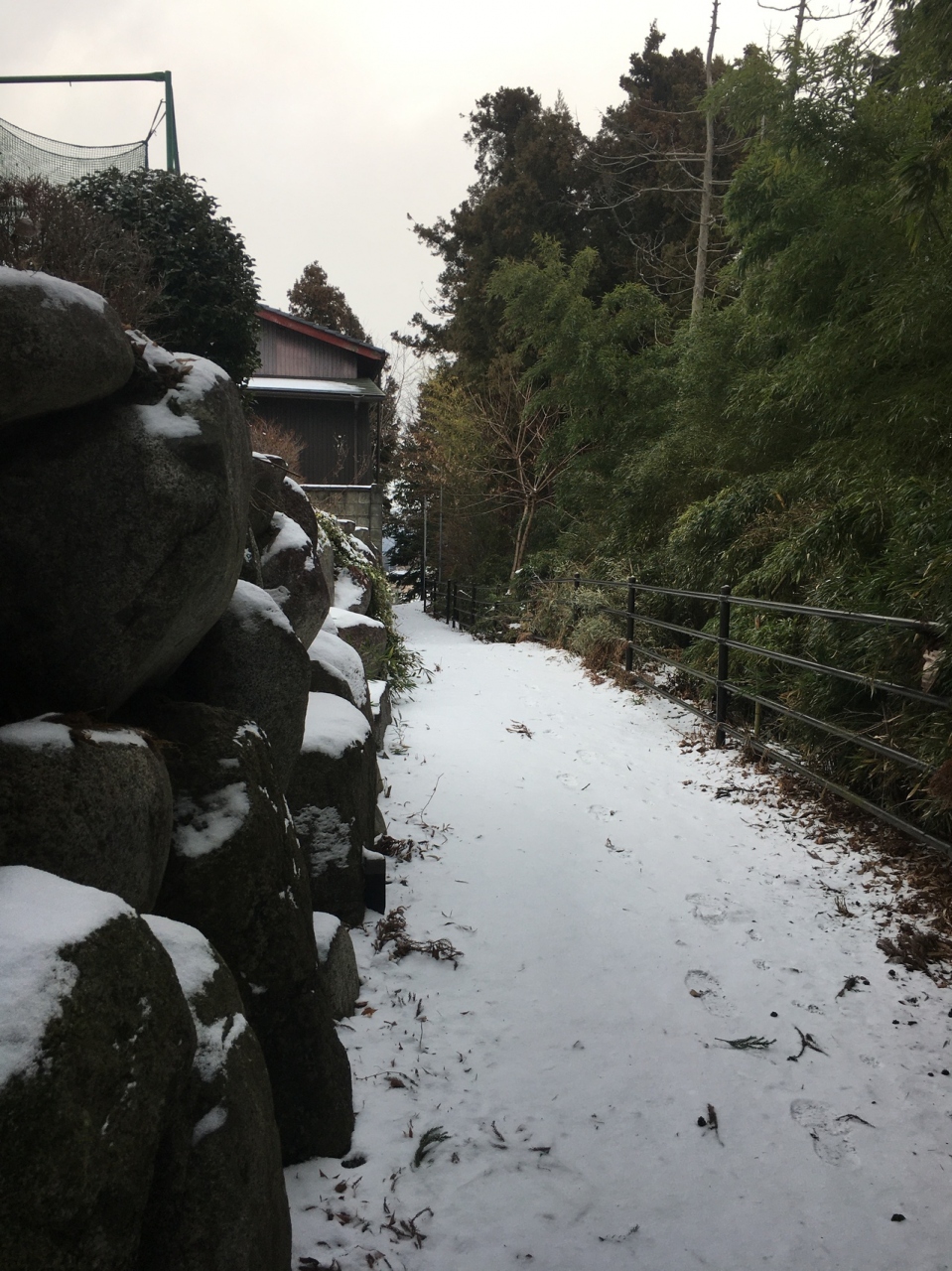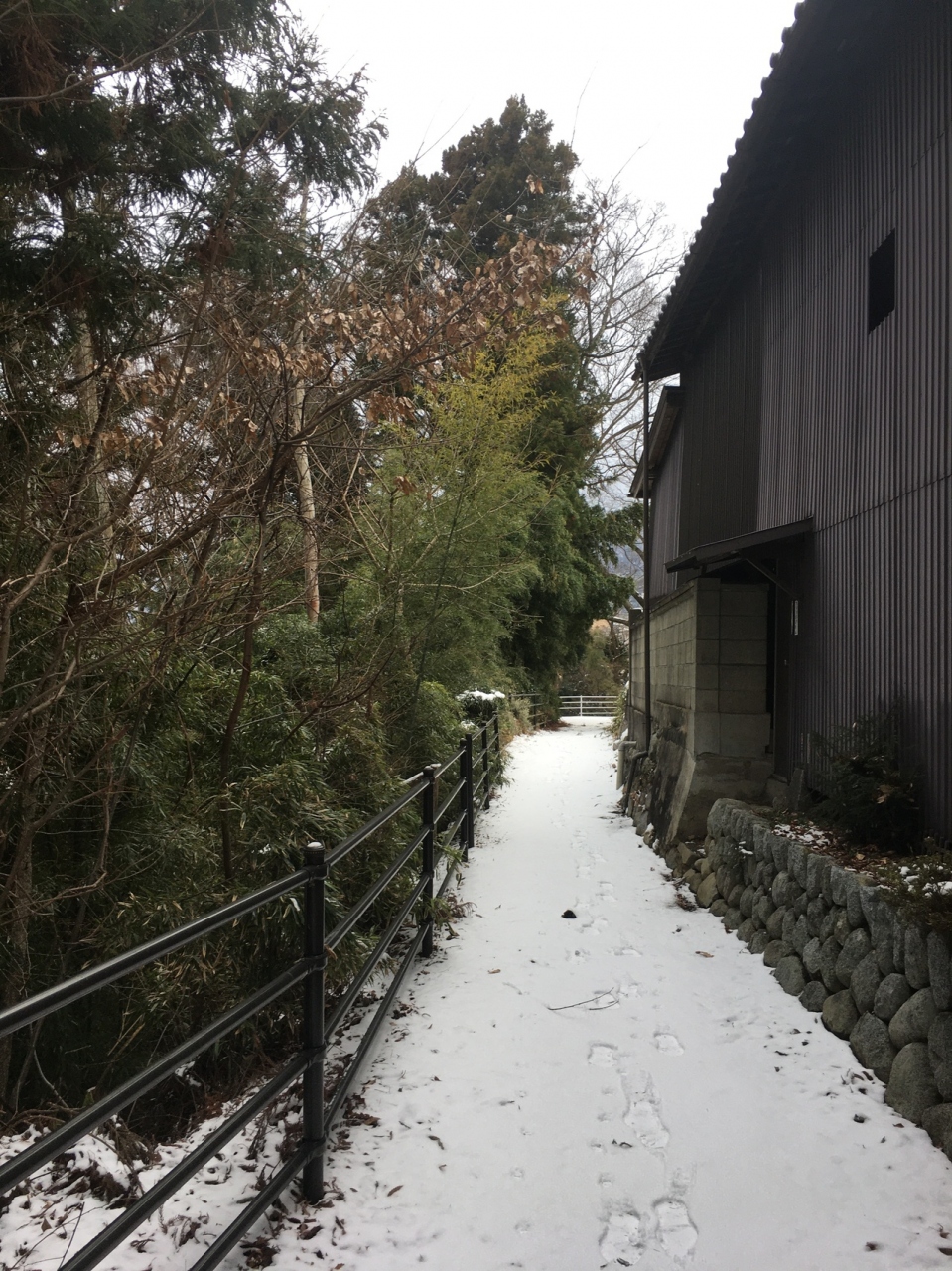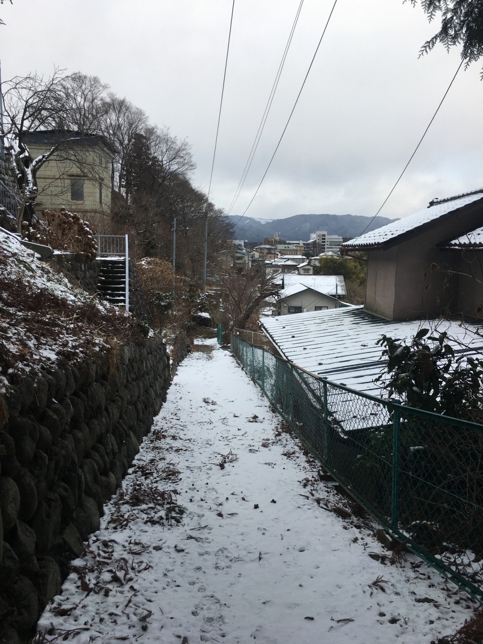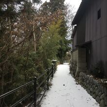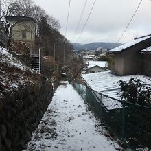 問屋へ荷を運ぶ時の混雑を避ける裏道で、場所も分かりずいところにありました。人がすれ違えるぐらいの幅で上から行くと右側は木々がある高台で左側は民家が並んでいて、途中から下りの坂になっていました。昔利用されていたような生活用水路が3つありました。今でも裏道でした。