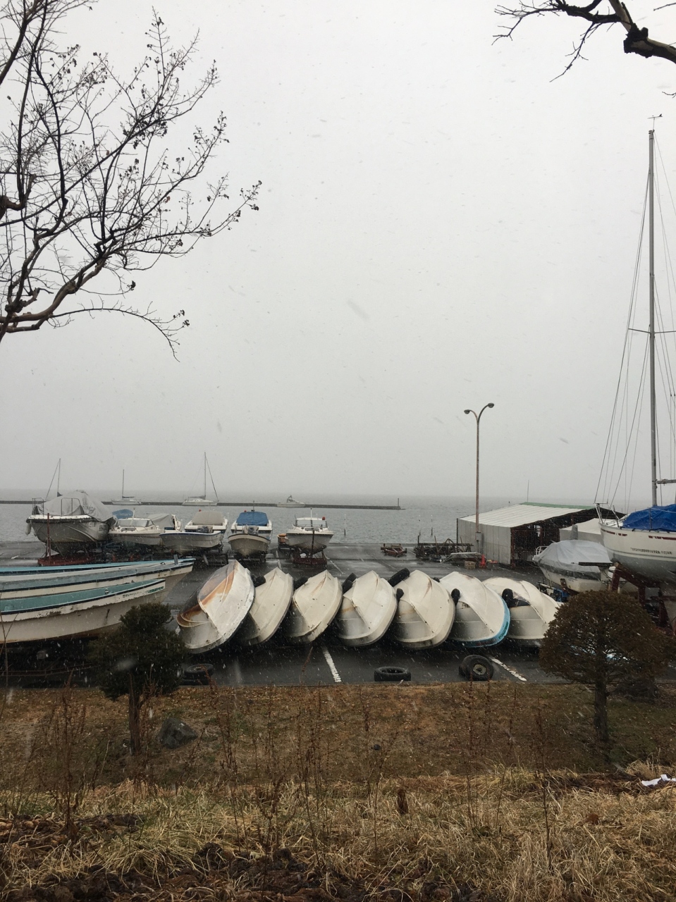 湖畔沿いを一周しようとしましたが広すぎてやめました。途中ヨットハーバーがあってたくさんのヨットが停泊していました。湖畔沿いは遊歩道になっていて雪が降っていたにも関わらずランニングしている人もいました。電車からも湖が見れます。