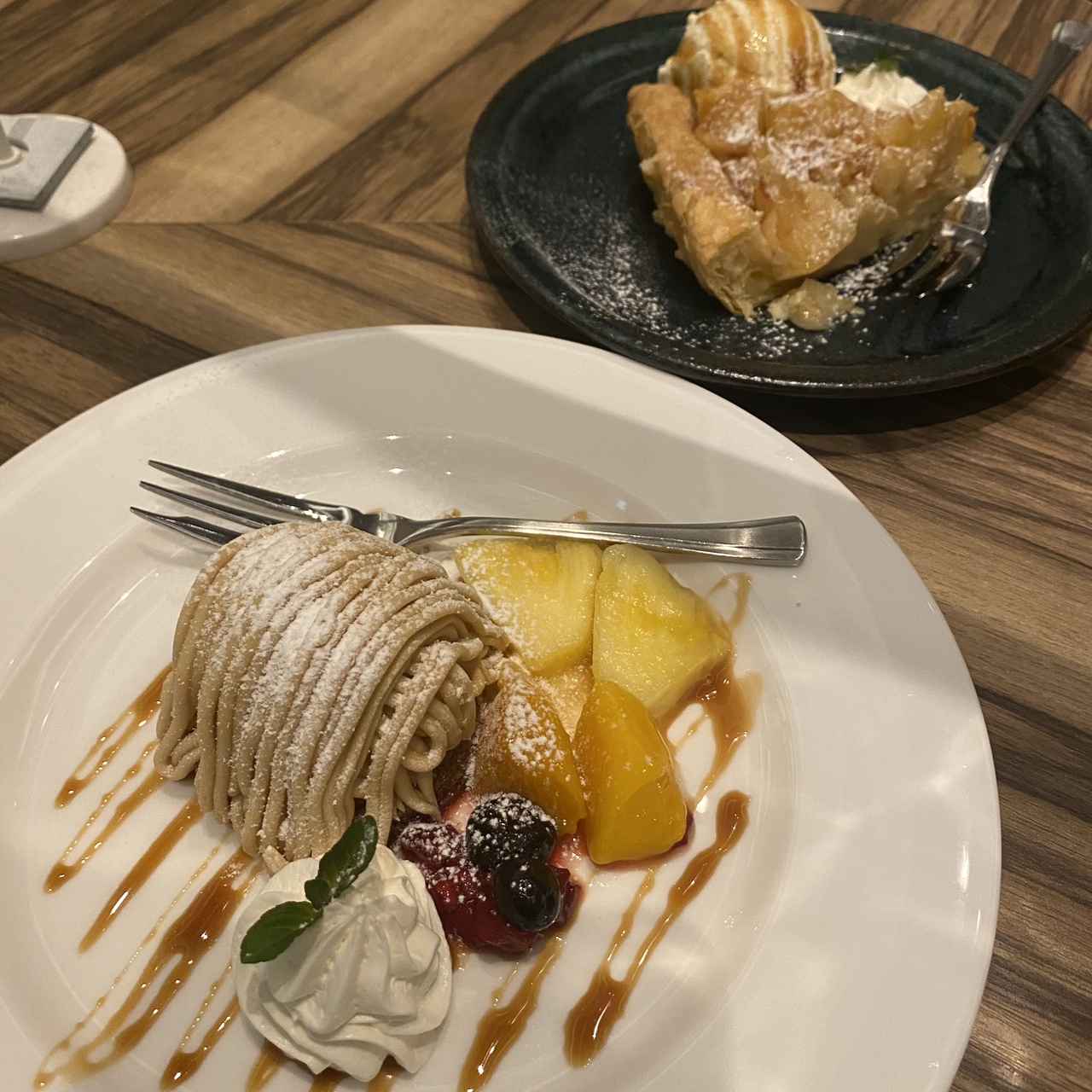 遅めの時間で喫茶利用で訪問いたしました。アップルバイのアイス添えとモンブランをいただきました。ホットココアとともにいただきましたが、どちらもおいしくいただけました。お店の雰囲気も良くて、居心地がよかったです。