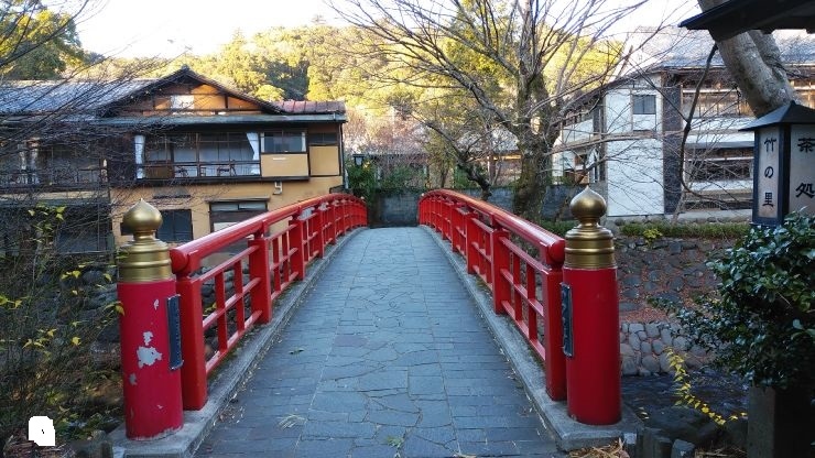 竹林の小道や独鈷の湯付近など橋を渡る機会が多いので、こういった演出はちょうど良いと感じた。橋の付近で写真を撮っている観光客も多く見られた。