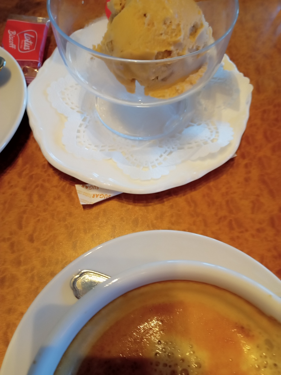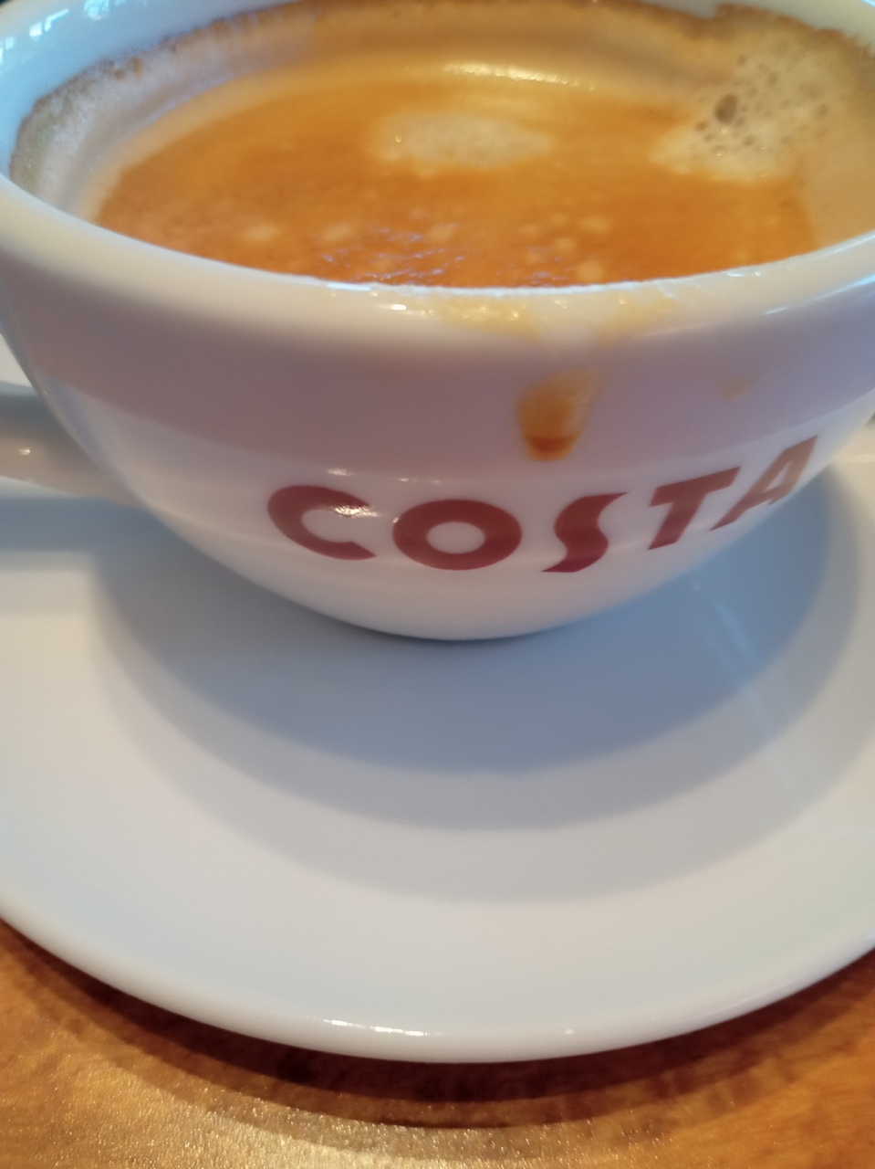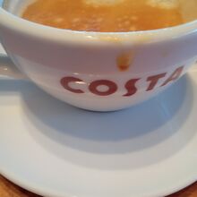 コスタコーヒーが提供されています。コスタコーヒーと普通にここのケーキやアイス等をいただきました。夕方はイルミ点灯まで暖をとる感じでここでまったりしてる人が多かったです。なので、まあまあ混んでいました。