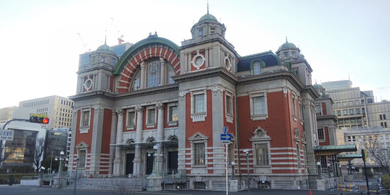 大阪市中央公会堂は文化、芸術、社会活動の場として今でも利用されています。近くにある日本銀行の大阪支店などと同じ大正時代のレトロ建築です。つい先日まではクリスマスなどにあわせてイベントなとが目の前の広場でされていました。
