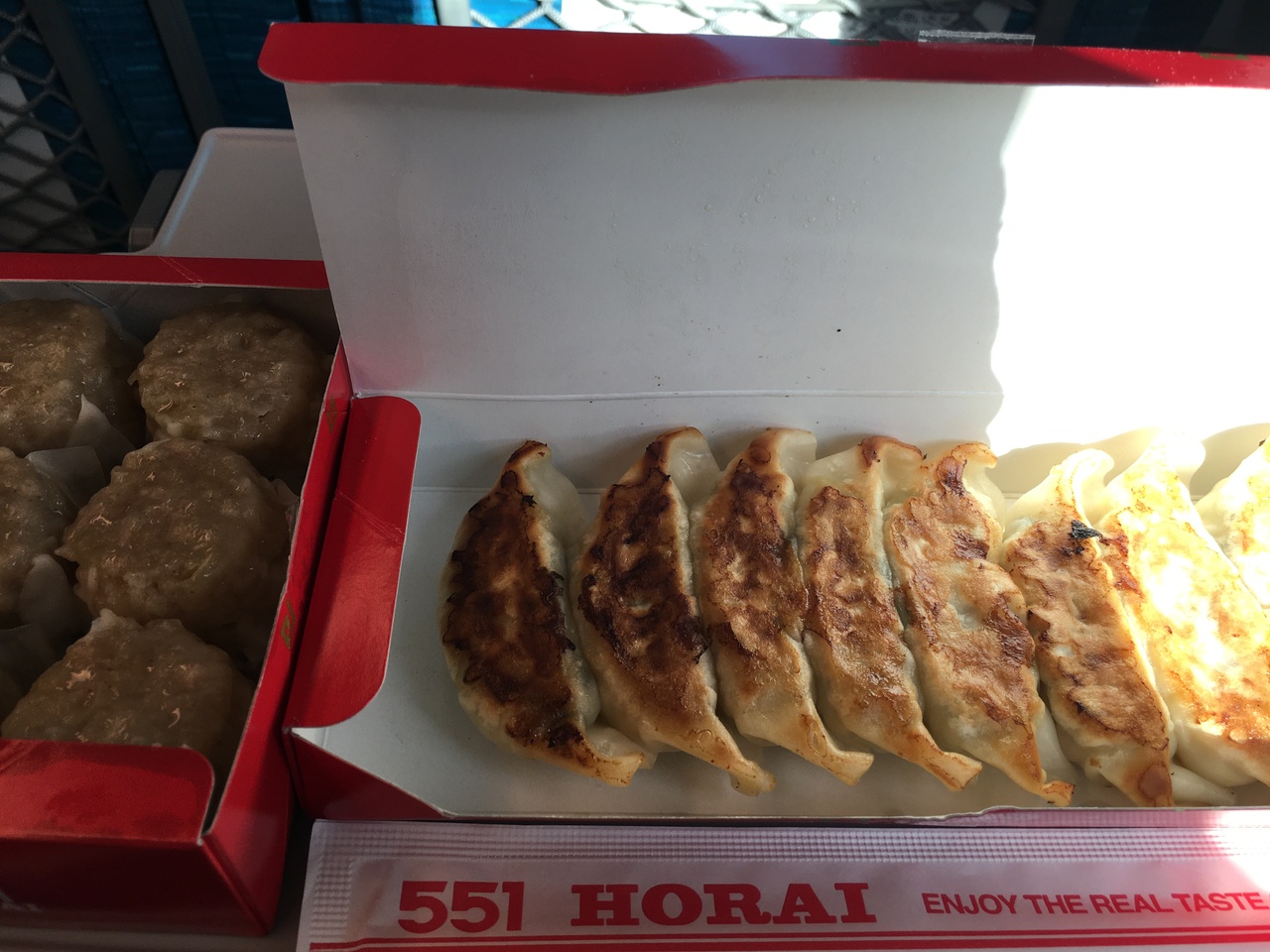 新大阪駅改札外の通路沿いにはあり行列上出来ていて10分ぐらい並びました。餃子と焼売を購入。餃子は1箱8個入りで焦げ具合が良く、ビールに合いました。焼売は1箱6個入りで柔らかい味わいでした。何方も並んだだけ旨かったです。