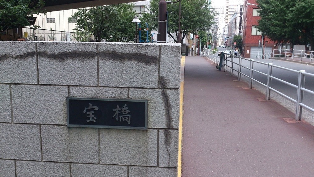 中央区京橋と八丁堀の境目にある首都高速道路を渡る橋です。以前は下に楓川が流れていましたが、現在では埋め立てられています。橋の両サイドに公園が整備されていて、首都高速道路も見えない状態でした。明治時代の架橋で、現在の橋は、関東大震災後の震災復興事業により昭和4年に架け替えられたものです。