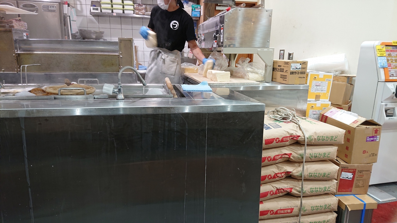 店頭の券売機でチケットを買い入店するのだけれど最初に現れるのが茹で場。