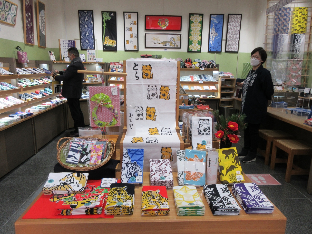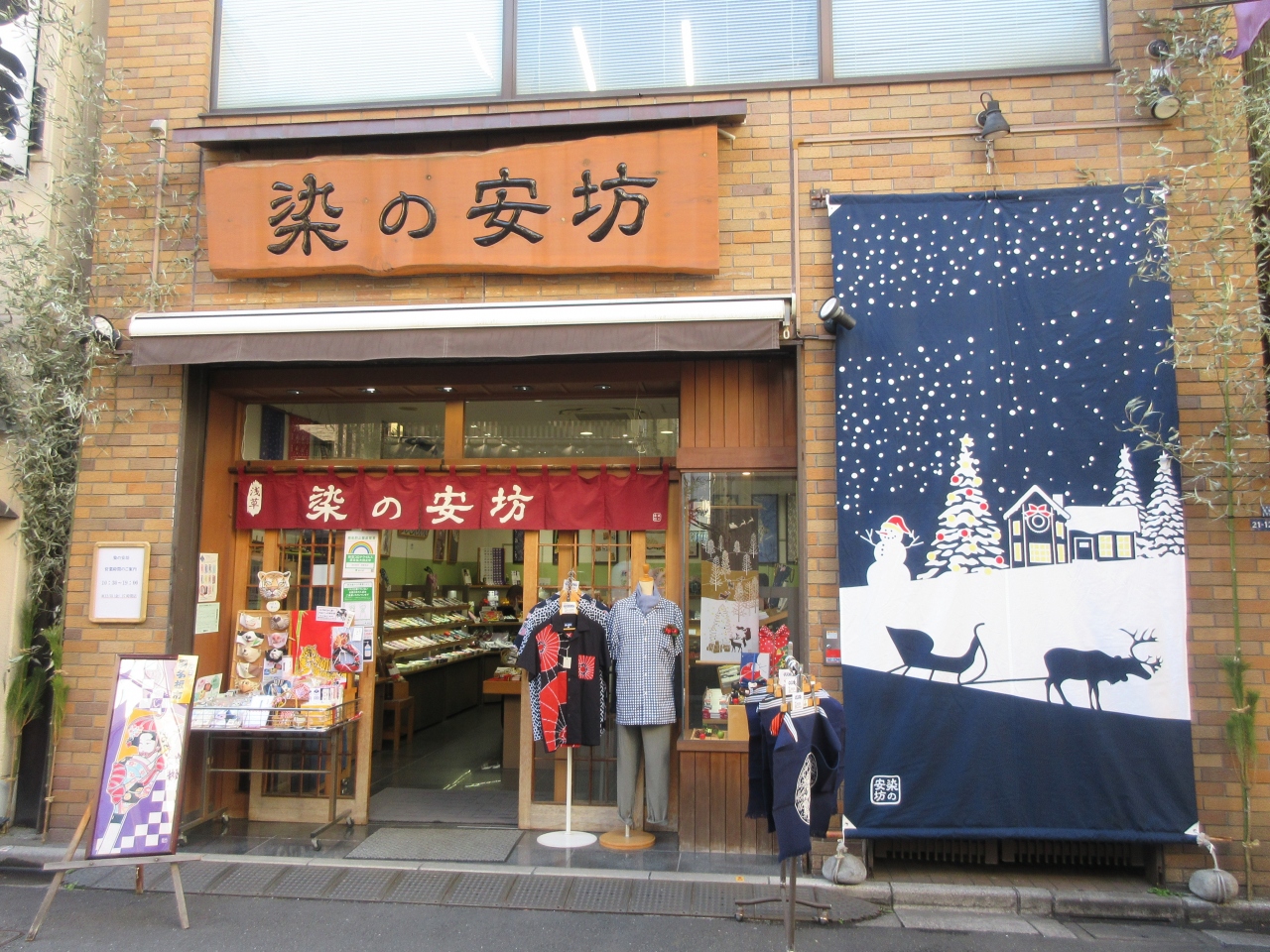 新仲見世通り近くにある浅草中央通りの手拭い専門店です。浅草に手拭い専門店がいくつもありますが、自分好みの柄が揃っている店です。訪れた12月中旬、季節物のクリスマスや来年の干支の寅柄コーナーがありました。藍色の伝統柄やタペストリー向きの柄など他店で見ない柄が多かったです。マフラー、ハンカチ、バッグ、のれん、アロハシャツなど和柄の商品もあります。季節により展示品を入れ替えているそうですが、展示されていなくても在庫があるので気軽に声掛けをしてくださいとスタッフに言われました。30年間外国の友人たちに和風の物を年末に贈っていて、来年は何にするか悩んでいたので、手軽に送れる手拭いにしようかと思います。翌年の干支柄は11月から新作も含めて展示するそうです。依頼すれば文字や名前を入れてくれます。雷門柳小路にオーダー専門店があるのも特徴です。