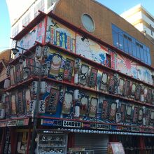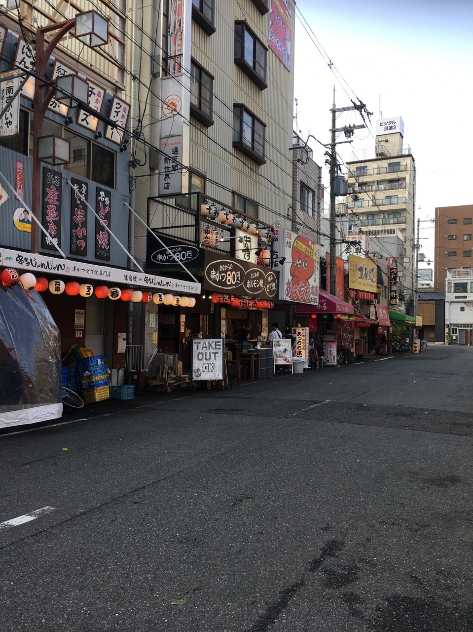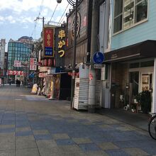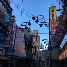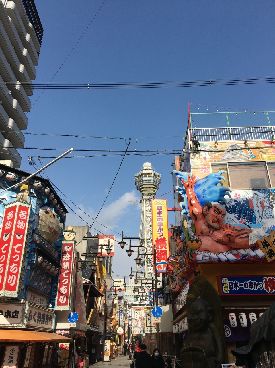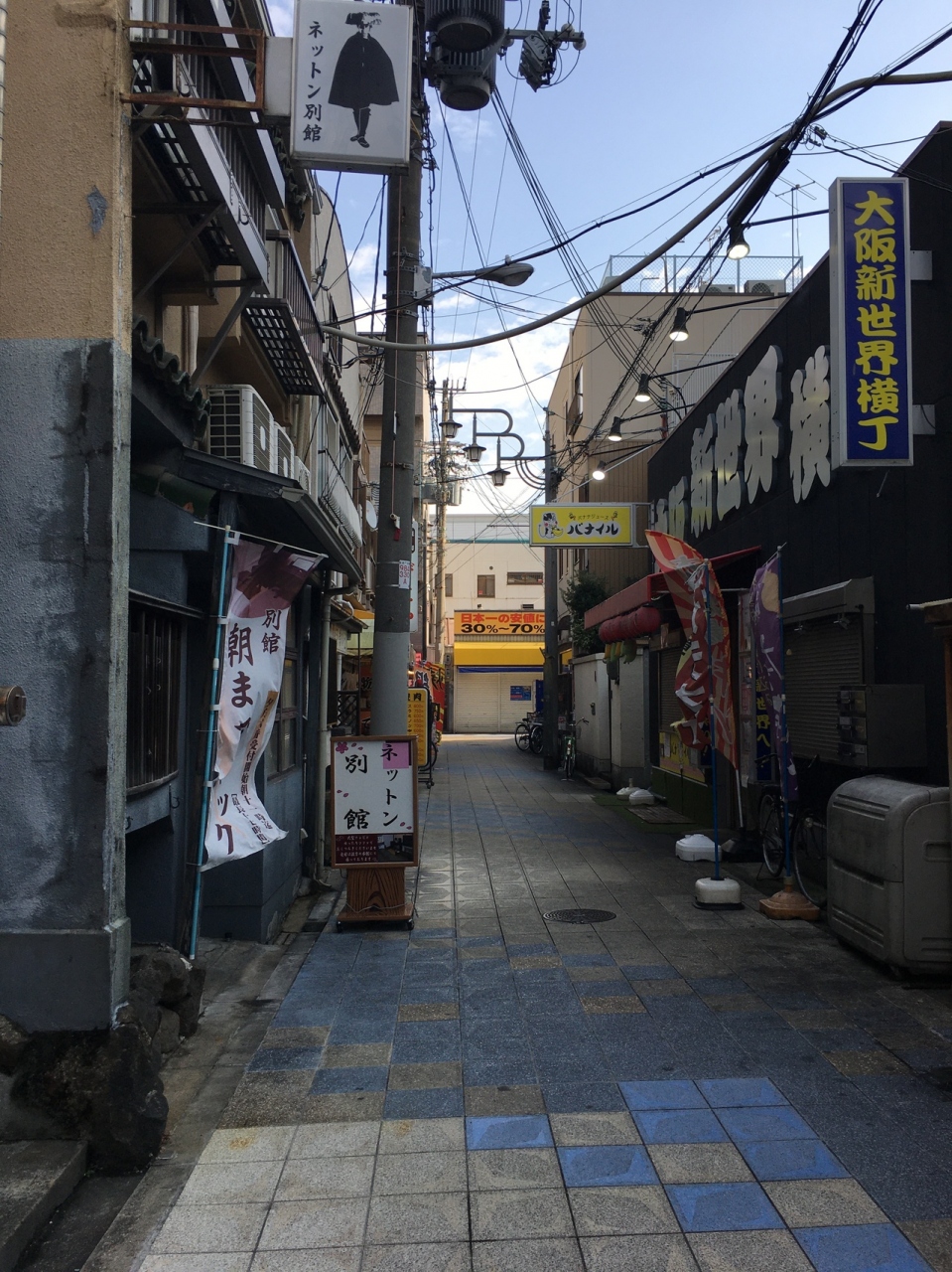 通天閣のタワーを中心に串カツ屋、たこ焼き屋、飲み屋等が連なり射的等もありました。歩いているだけで楽しいところで夜になるとネオンが煌びやかで人が多い場所でした。細い路地もいくつかあり、行列店も何店かあります。