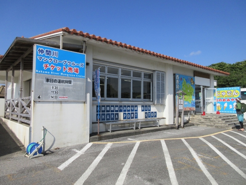大原港の前で、由布島観光へ行くための路線バス停留所もありました。西表島の大きな地図が掛かっているのですぐわかりました。中では土産物屋の他、由布島観光のチケットを手に入れることができました。帰りにソフトクリームを食べました。