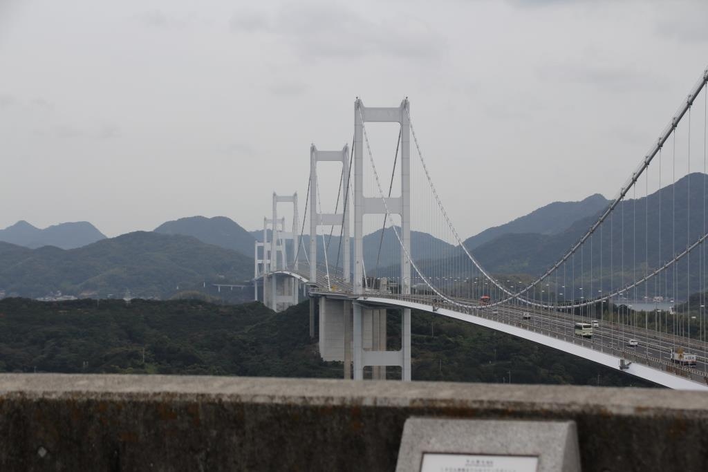 車で橋を通過するとそのすごさがいまいちわからないのですが、愛媛県四国側の陸地から橋の全貌を眺めることができます。