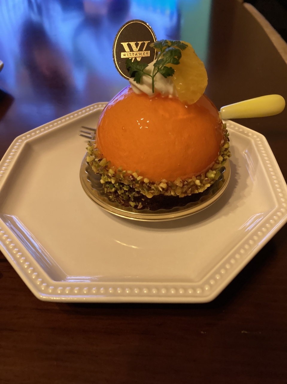お節料理に飽きてきたので自分へのご褒美にと美味しいケーキを買いました。デパ地下のショーケースには見た目も可愛いケーキが沢山並んでましたがオススメのマークが付いたケーキを買いました。生クリームの甘さの前にオレンジの香りが感じて大変美味しかったです。
