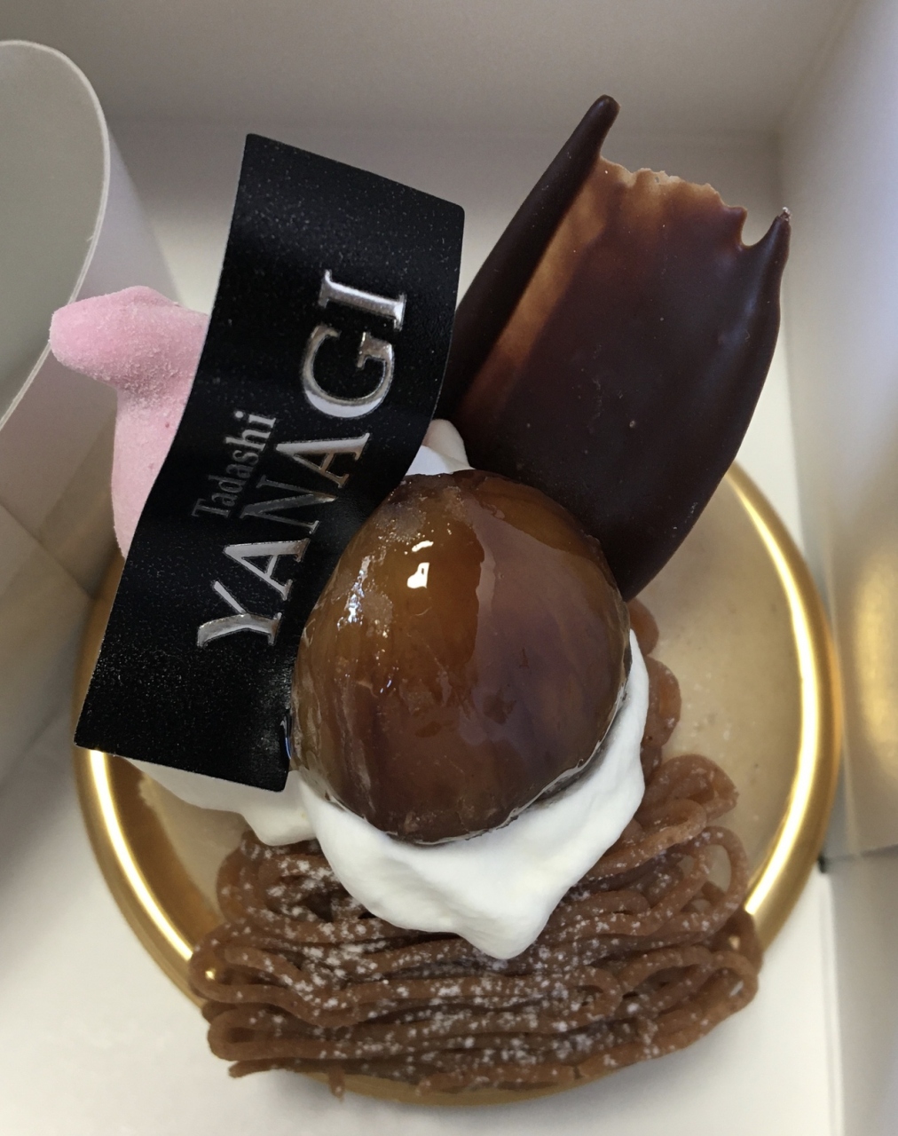 定番のいちごのショートケーキ(580円)、シェフのおすすめ印が付いていた杏のケーキ(680円)、マロンカシス(648円)を買いました。マロンカシスは、その名前の通り、栗のムースの中にカシスのジュレが詰まったケーキで、栗とカシスが相性抜群で目から鱗でした。
