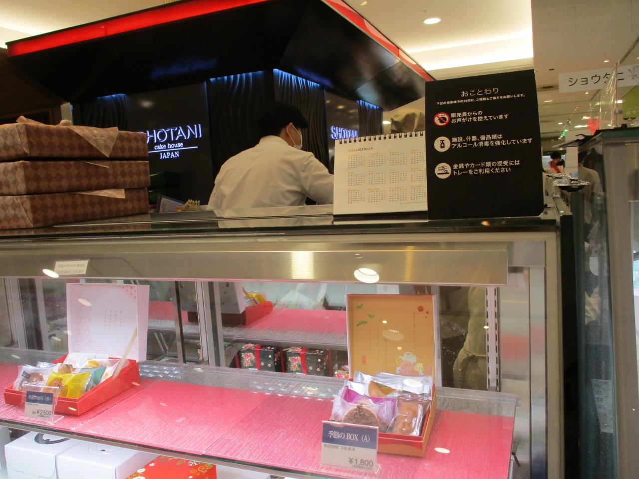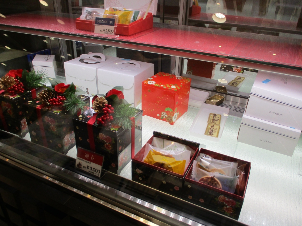 松坂屋高槻店にケーキや洋菓子のお店の「ショウタニ」があります。おいしいお店です。年末に行ったら、昼間なのに、もうケーキのケースはほぼからっぽでした。びっくりしました。ケーキ以外ではお正月向きのお重に入ったお菓子のギフトがあり、とてもきれいでした。お客さんがたくさんで賑わっていました。