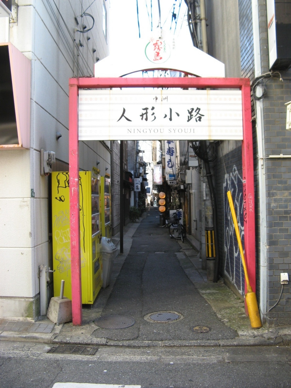 歓楽街・中洲の一角にある細く小さな路地です。入り口には「人形小路」と書かれた表示板が上がっていますが、“人形”とは何の関係も無い様で、昭和の雰囲気が漂う狭い通りに20軒ほどの小さな飲食店が軒を並べています。どのお店も隠れ家的な印象で一見の観光客が気軽に入れるような雰囲気はなく、昼間に訪れたこともあって静けさのみが印象に残りました。