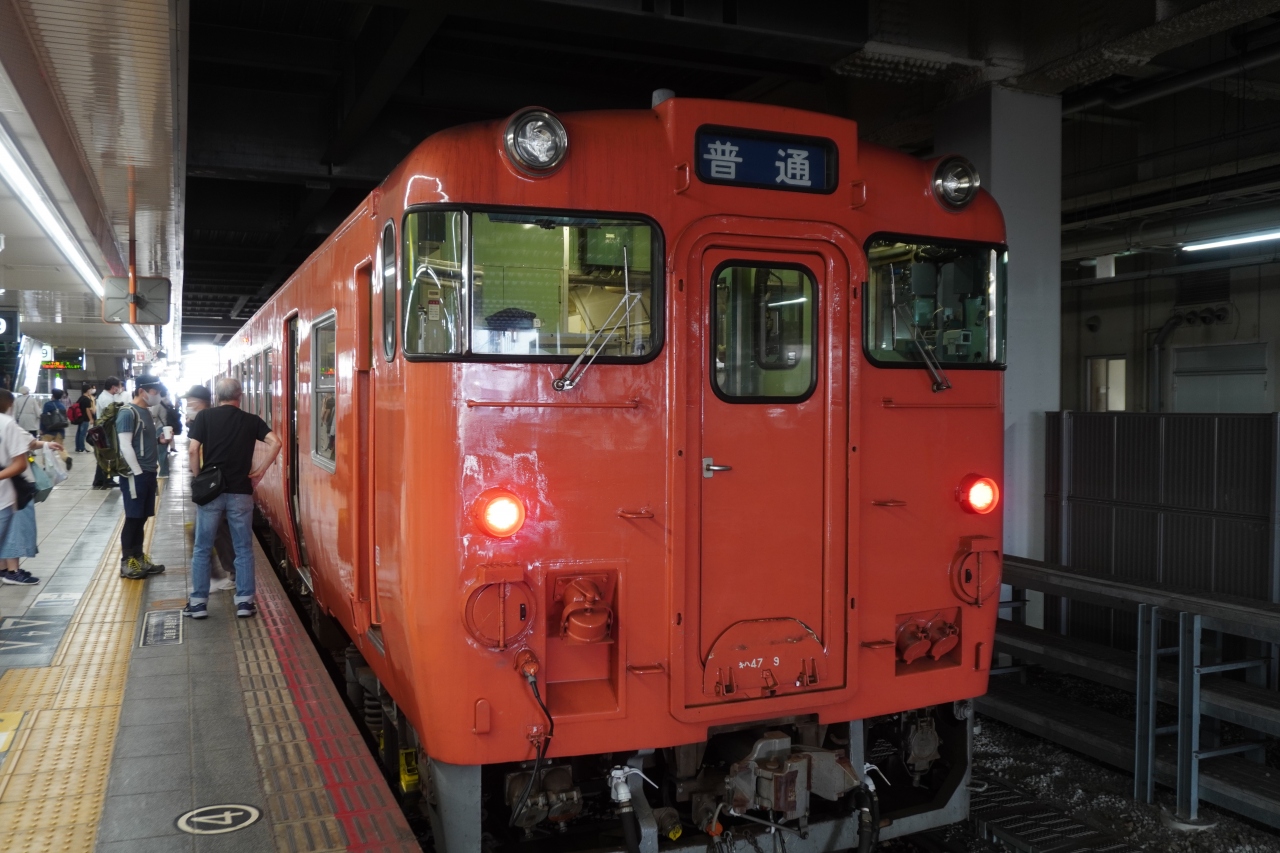 JR芸備線は、広島駅から三次経由、岡山県新見市の備中神代駅までの路線。広島から三次までを利用しました。安芸高田市辺りからは、江の川が見えはじめ、中国山地の山間、霧がよく出る地帯を進みます。2時間強もかかってバスと競合する区間なんですが、時間をあまり気にせずに楽しめば問題ないと思います。