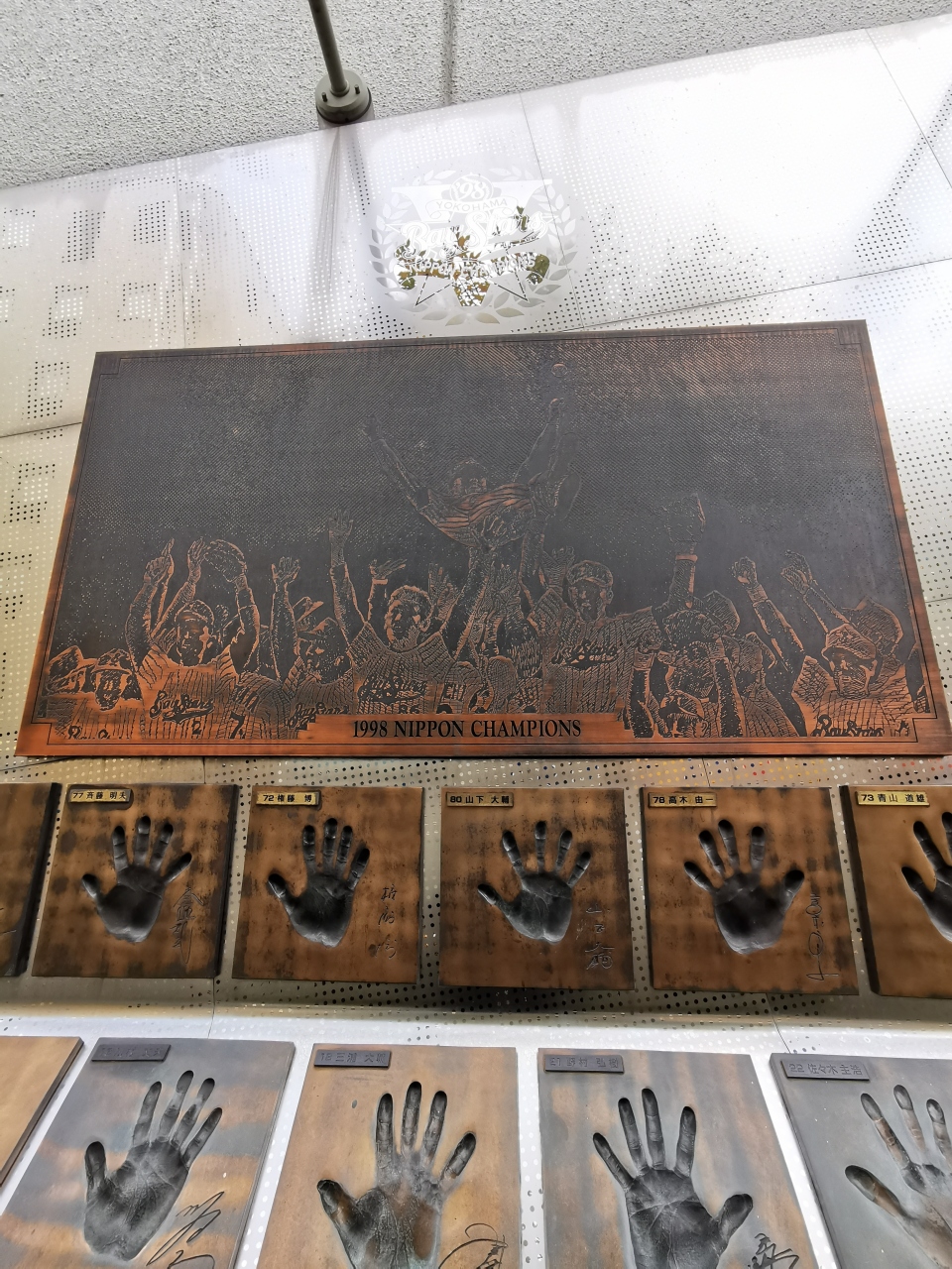 横浜観光。散歩も兼ねて旧い建物探訪です。関内駅からスタート。横浜公園は関内駅をおりてすぐ。ベイスターズの横浜スタジアムがある公園です。プロ野球のシーズンオフですのでゲートはクローズ。中では選手が練習していました。横浜公園から歩いて2~3分の場所に、平成10年に横浜ベイスターズが日本一となったことを記念して造られたモニュメントがあります。煌(きらめき)と名が付いていました。残念なのは少しくすんで文字がよくみえません。