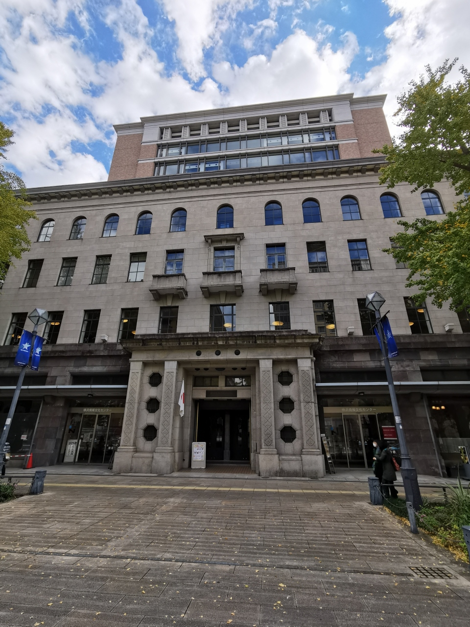 横浜観光。散歩も兼ねて旧い建物探訪です。関内駅からスタート。横浜公園から大桟橋方向に歩いていきました。日本大通りは横浜公園から海岸通りに向かう広い通り。11月後半で日本大通のイチョウが真っ黄色に紅葉していてとても綺麗でした。横浜都市発展記念館は地下鉄日本大通りの真上です。旧横浜市外電話局として昭和4年に建築された建物です。中からは旧第一玄関を見る事ができます。