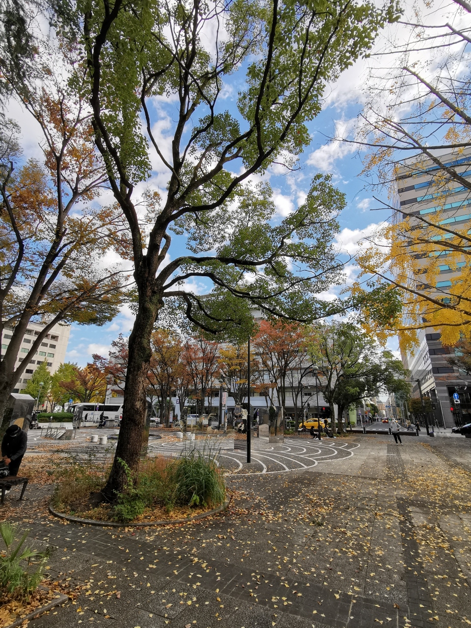横浜観光。散歩も兼ねて旧い建物探訪です。関内駅からスタート。横浜公園から大桟橋方向に歩いていきました。日本大通りは横浜公園から海岸通りに向かう広い通り。11月後半で日本大通のイチョウが真っ黄色に紅葉していてとても綺麗でした。
