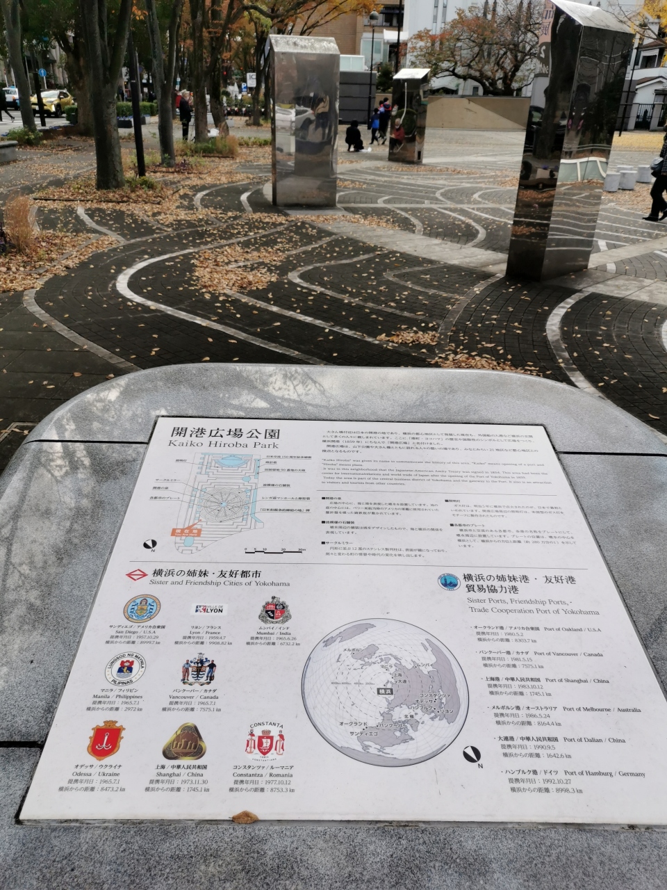 横浜開港資料館から開港広場へ。開港広場は大桟橋に向かう道に面した広場と公園です。綺麗に整備されて家族連れも多く。港横浜を感じる良い場所です。