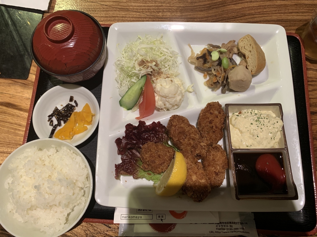 カキフライは揚げたてのサクサクで美味しかったですが、お味噌汁がちょっと薄かったような。