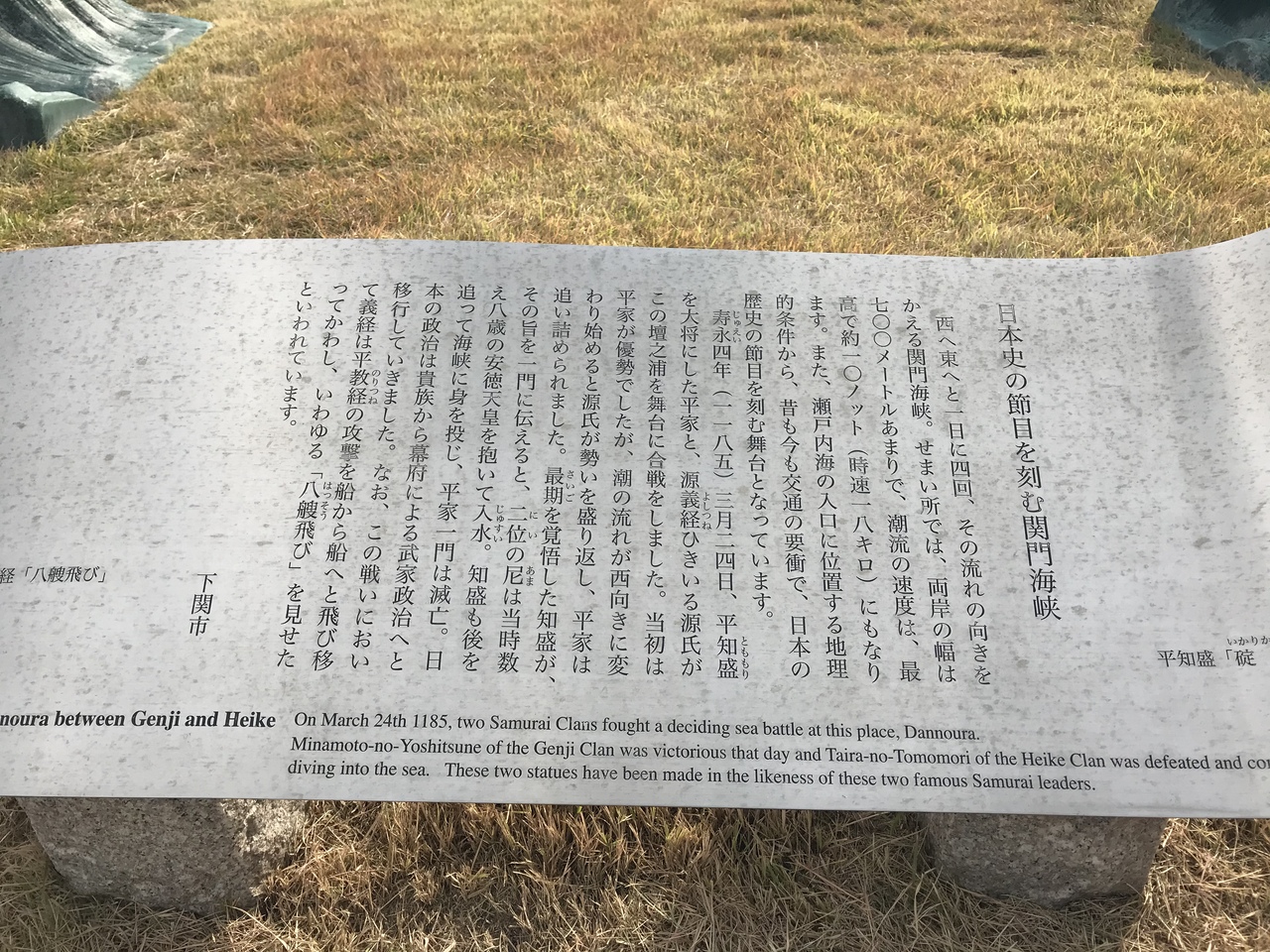 源平の壇之浦古戦場であり、安徳天皇入水処が碑がある。長州藩の幕末の攘夷戦で外国船に砲撃した砲台跡でもありレプリカの長州砲が並んでいる。