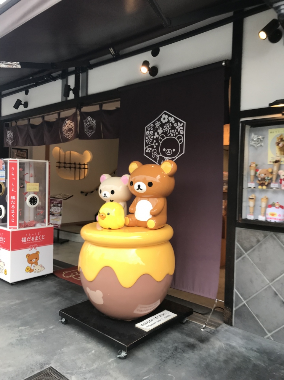 嵐山には、リラックマの他にミッフィーちゃんなどのキャラクターの店が並んでいます。こちらには、はちみつの商品のほかに、リラックマのお土産も並んでいます。イメージ的には、ディズニーランドのプーさんのハニーハントという感じですね。