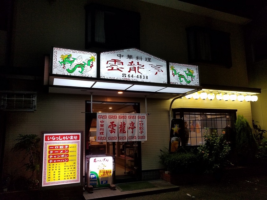 雲龍亭は、島原市街中心部から少し離れていますが、島原鉄道の霊丘公園体育館駅(旧島鉄本社前駅)近く、幹線道路沿いの分かりやすい場所にあります。中華屋ですいが長崎にあるだけあって、ちゃんぽんや皿うどんも食べられます。夕食で一口餃子とうどんを美味しくいただきました。