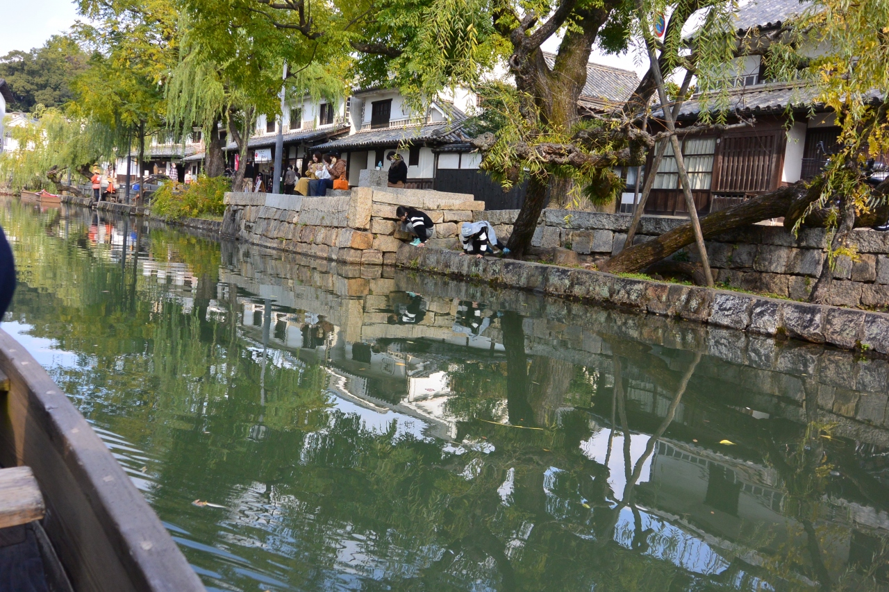 倉敷館の前から出発して高砂橋まで行って折り返し、中橋をくぐり、今橋のところで折り返し倉敷館に戻って来るコースです。美観地区の主なところを船頭さんの解説で船からじっくり眺められるし、とても楽しかったです。事前の調べではこの時期平日は舟は出ていないということだったんですが、「倉敷桃子」からパフェを食べながら眺めている舟が動いているので、食べ終えてすぐ倉敷館に行ってチケットを購入しました。まだ午前中でしたが、昼からの便の何席しか空いていませんでした。