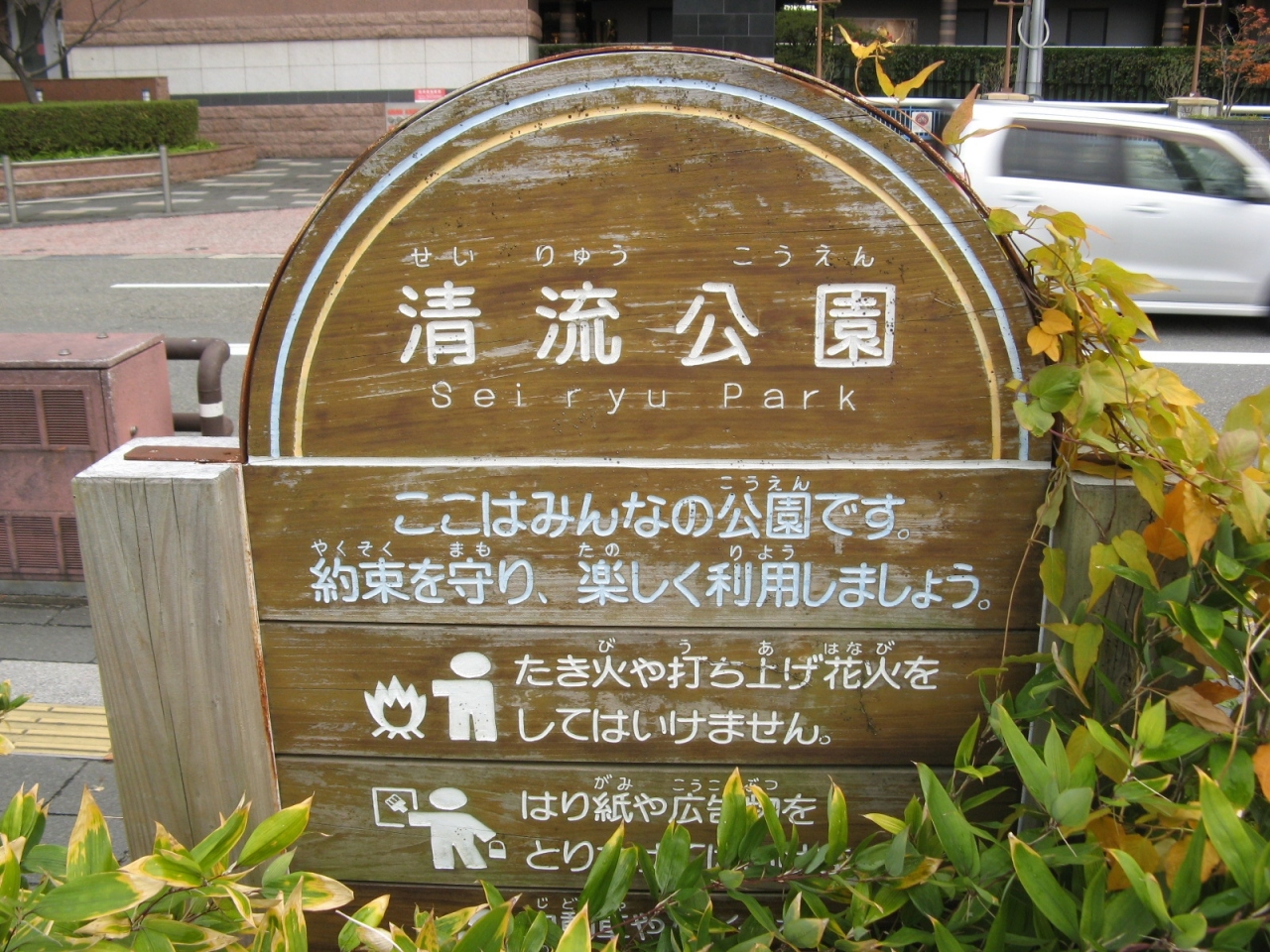 那珂川と博多川に挟まれた中洲の南端にる公園です。公園はそれほど広くはなく、花壇が綺麗に整備されていてベンチもあり街歩きの際に休憩するのに良い所ですが、見所は“博多町家寄進高灯篭”ぐらいで公園としては観光スポットと言えるようなところではありません。それにしても、何故、“清流”なのか疑問に思いました。