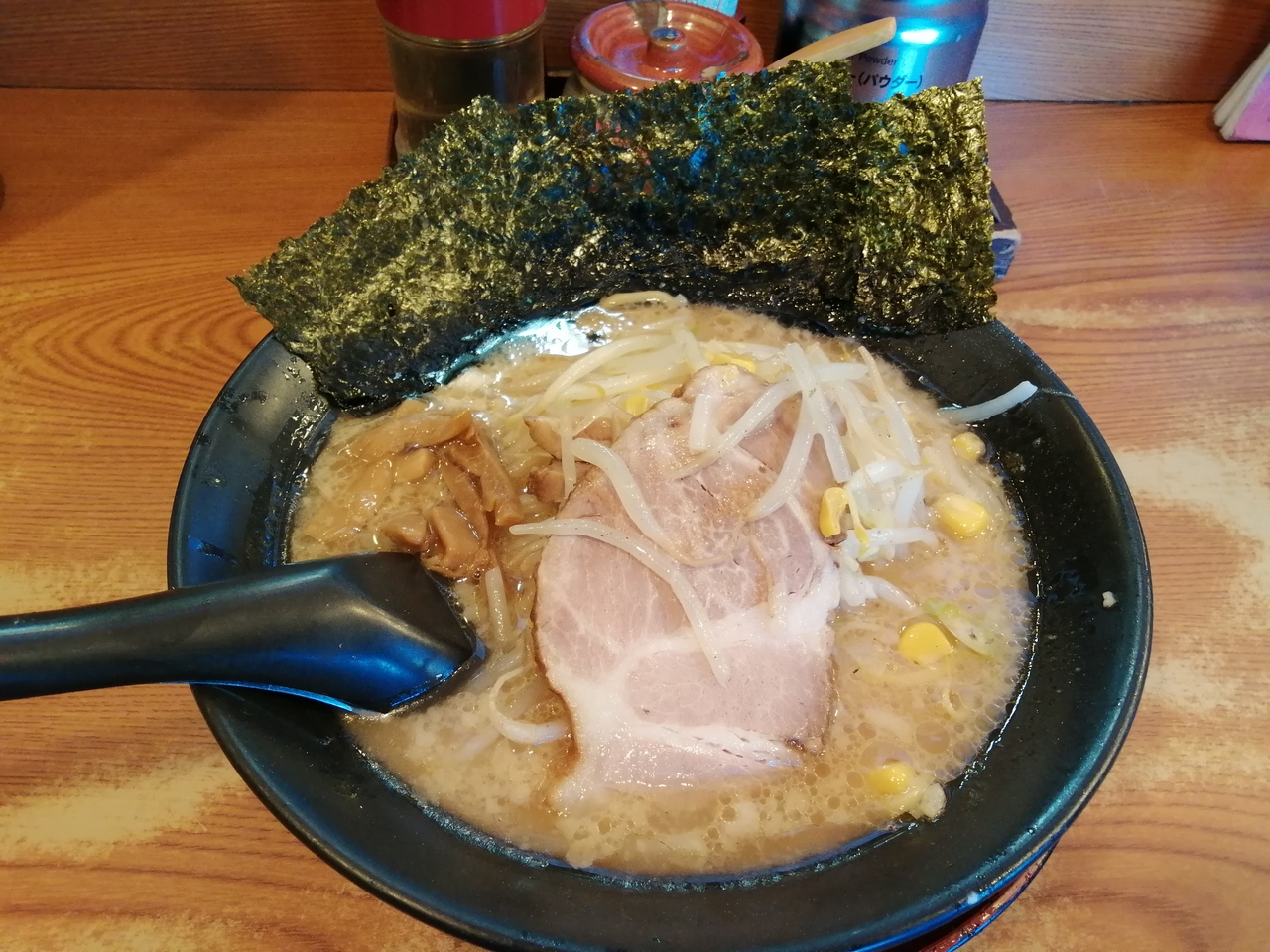 まずはスープをひとすすり、にんにくがドカンとやってきます。表面には背脂が浮いていますが見た目ほどこってりではありません。具材はチャーシュー、もやし、コーン、海苔。いわゆるザ・ラーメン。うまいと思いますが、これと言った特徴はないかなと。リピートは…って感じです。