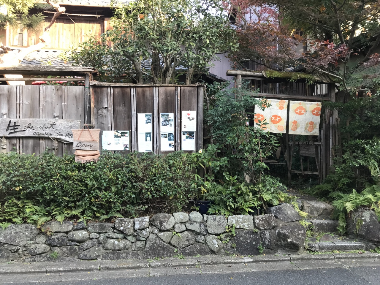 京都生ショコラ オーガニックティーハウスは、地下鉄「東山駅」から北東に徒歩15分くらいの場所にあります。暖簾をくぐると石畳が敷かれた緑豊かなアプローチになっています。今回頂いたのは、チョコセットとオーガニックコーヒー。まず抹茶のチョコ。濃い抹茶の苦味がガツンときてフワッと消える。そしてチョコレートの甘みがくる。甘さと苦味をしっかりと味わえました。スイートチョコは、フォークを入れた瞬間にわかる淡い口溶けが特徴。少し甘めだが決して甘過ぎない。味もさることながらやはり食感の方がいい感じ。フェアリーテイルチョコは、思ったよりもベリーベリーしていない。あくまでチョコレートが主役な感じ。他のものに比べてさっぱりしていました。ビターチョコは、これが一番私のお気に入り。ビターと言いつつもしっかりと甘さがあり、苦味はほとんどない。リキュール系の香りが鼻から抜けていく感じがとてもいい。どれも美味しかったです。
