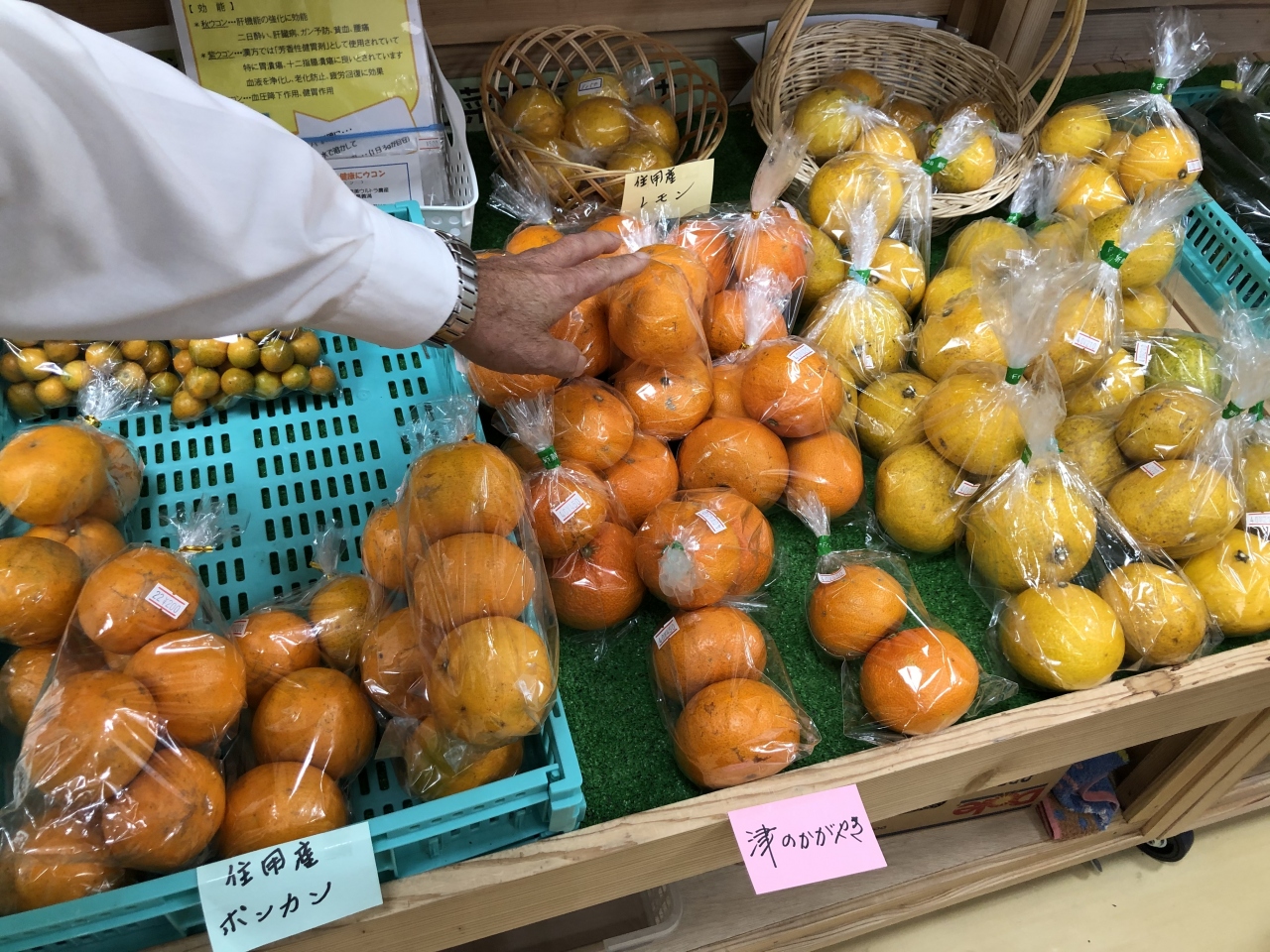 ツアーの行程表上にはなかったのですが、トイレ休憩も兼ねて訪問しました。お土産物や、地の果物を売っていました。ドライバーさんお勧めの「津のかがやき」という新品種も売っていました。たんかんとみかんを掛け合わせたとか。高級品です。