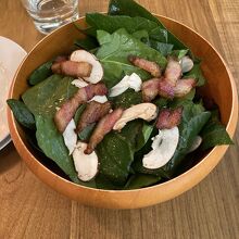 買い物帰りの夕食で利用しました。カウンター席とオープンテラスっぽいテーブル席がありカジュアルな雰囲気の店です。前菜にホウレン草とベーコンのサラダを頂きましたが食べ応えのあるホウレン草が大変美味しかった。アヒージョやパスタも絶品でした。次はカウンターの後ろの沢山のワインを楽しみたいです。