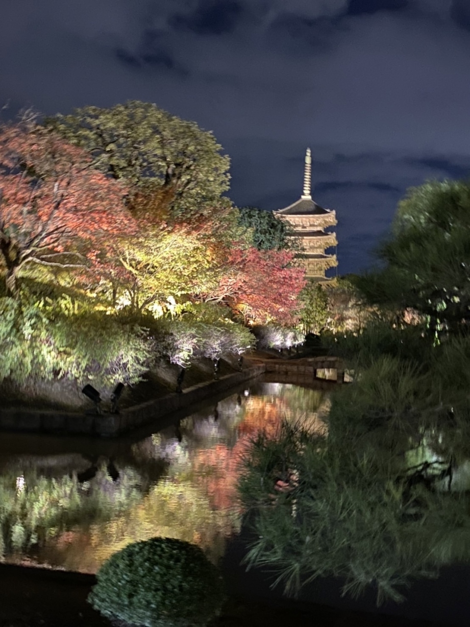 京都駅から南側にある東寺。教王護国寺という名前もありますが、東寺の名前のほうが通っています。毎日ではありませんが、夜間ライトアップは実に美しい。人の出は季節によりけり。ライトアップの時ばかりは拝観の価値が非常に高くなるお寺さんです。