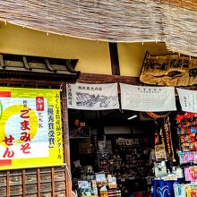 大内宿の本家扇屋の向かいにある田沼商店。民宿をしている本家扇屋の分家的なお店。そのため本家扇屋で出される具材も売られている。お土産のお菓子も豊富も豊富に取り揃えている。おすすめは会津名物のとち餅だろう。栃の実が入っており、とても美味しい。