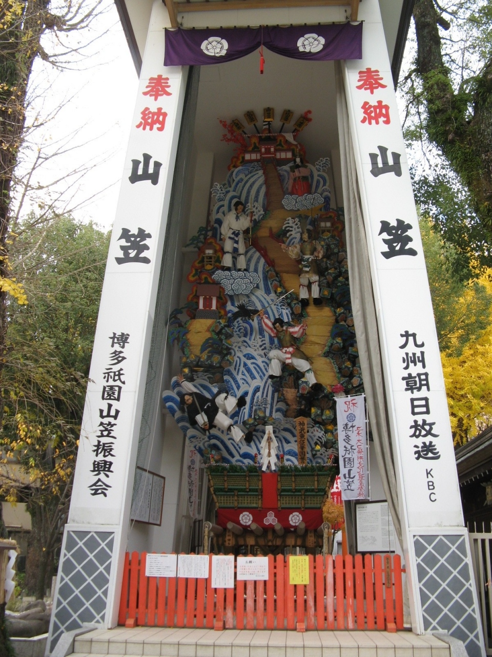博多の総鎮守。757年に創建された歴史を持つ古社で博多どんたく、祇園山笠、博多おくんち等の祭礼で知られ、地元の人からは「お櫛田さん」と親しまれている神社です。境内には、県指定の文化財である蒙古碇石や力石、常設展示の飾り山笠などがあり興味深く観ることができました。