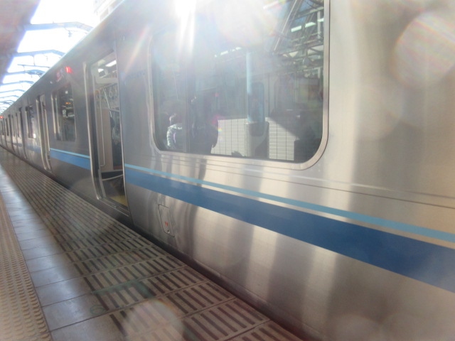 小田急線の路線の一つで、相模大野の駅から藤沢、江の島方面までアクセスできる路線です。青のラインが入った電車で、新車にも乗れました。日曜昼間でしたが、乗客はまあまあいましたので、座れるか座れないかの微妙な感じ。でも新宿方面に比べるとすいていて安心です。