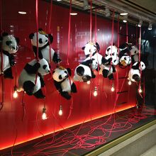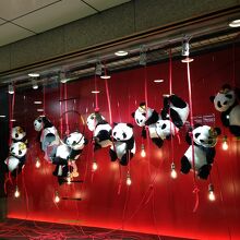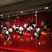 1階には パンダが たくさん ぶら下がっているデコレーション。